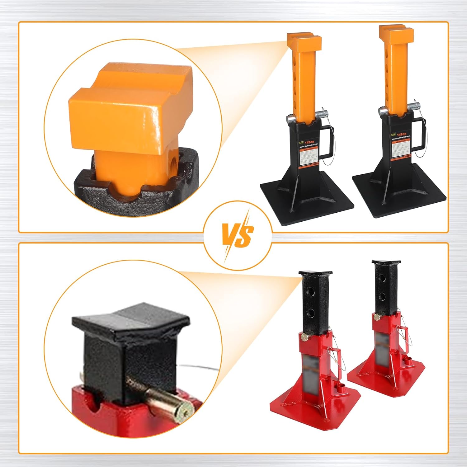 - 【Enhanced Stability and Safety】These jack stands prioritize stability and safety. With wide bases and stable support arms, they offer a solid and secure foundation. This design minimizes the risk of vehicle tipping or shifting during maintenance or repair tasks, providing a safe and reliable working environment.