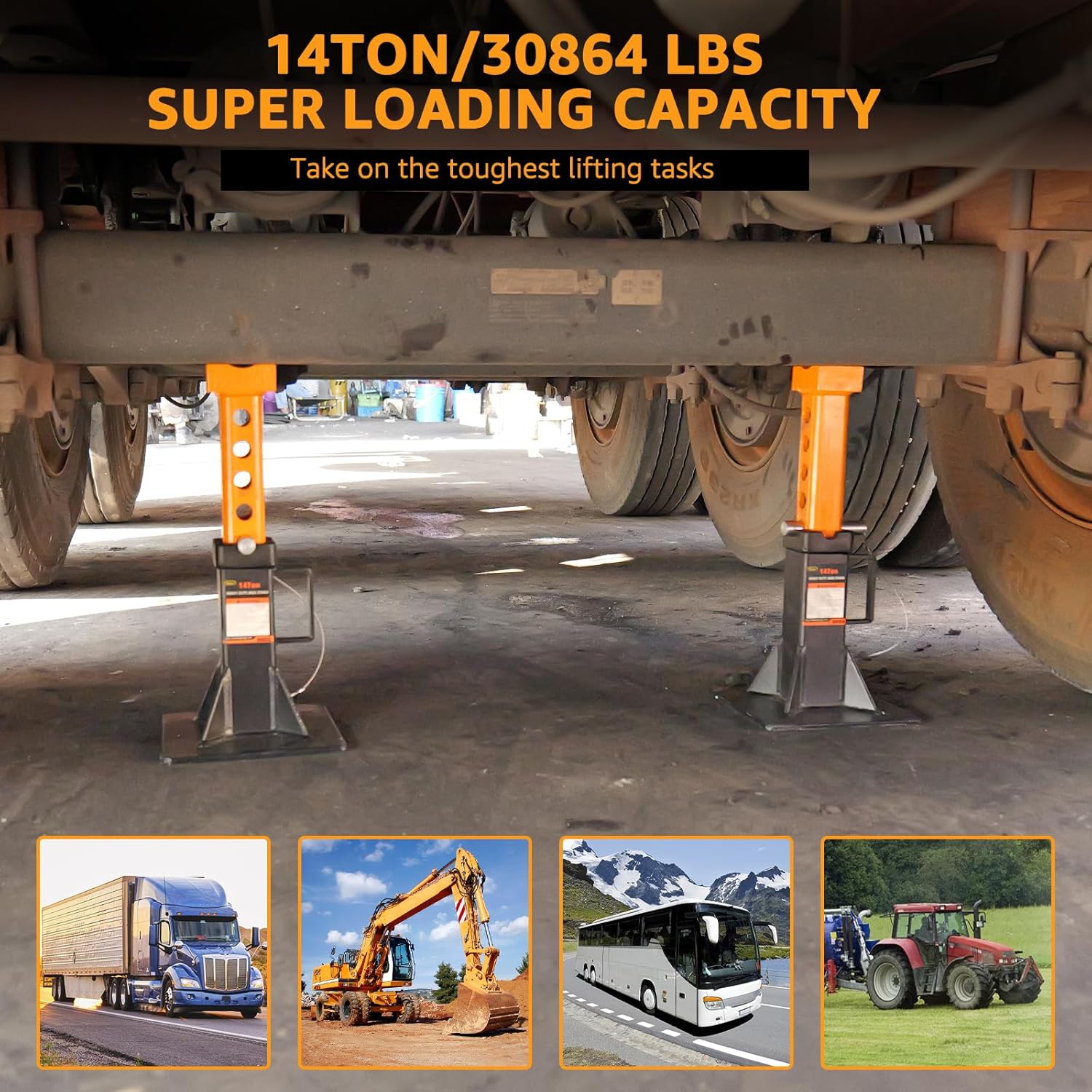 - 【Heavy-Duty Support】These heavy-duty jack stands are specifically designed for automotive applications, providing robust support for vehicles of various sizes and weights. With their heavy-duty construction, they can handle the weight capacity of up to 14 tons, making them ideal for heavy vehicles such as trucks, SUVs, and commercial vehicles.