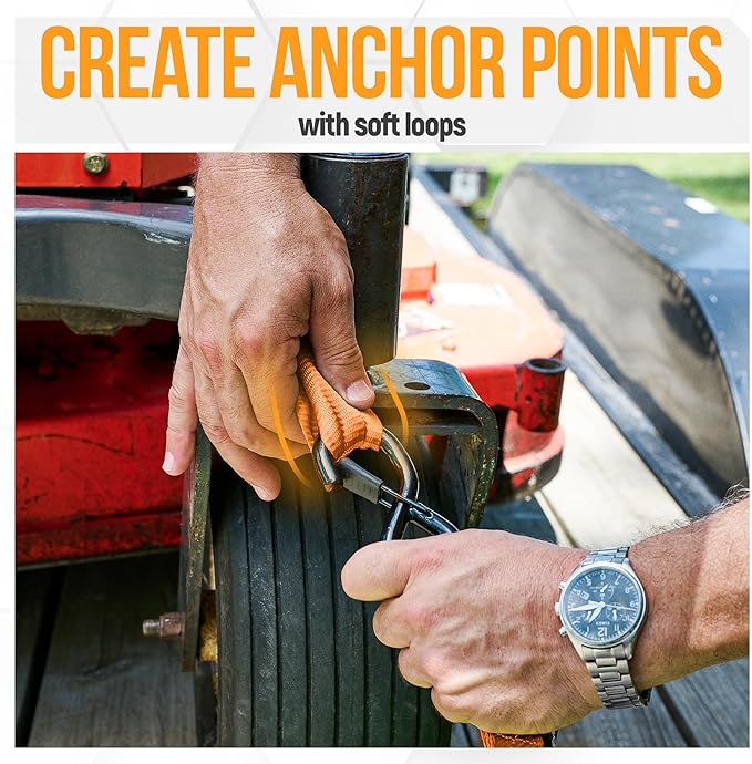 - Safe & Secure – Ratchet straps heavy duty S hooks and soft loops straps help create tie down anchor points to strap items to cars, SUVs and trucks. Ergonomic rubber grip handles make it easier to hold while ratcheting to secure your loads safely during transport.