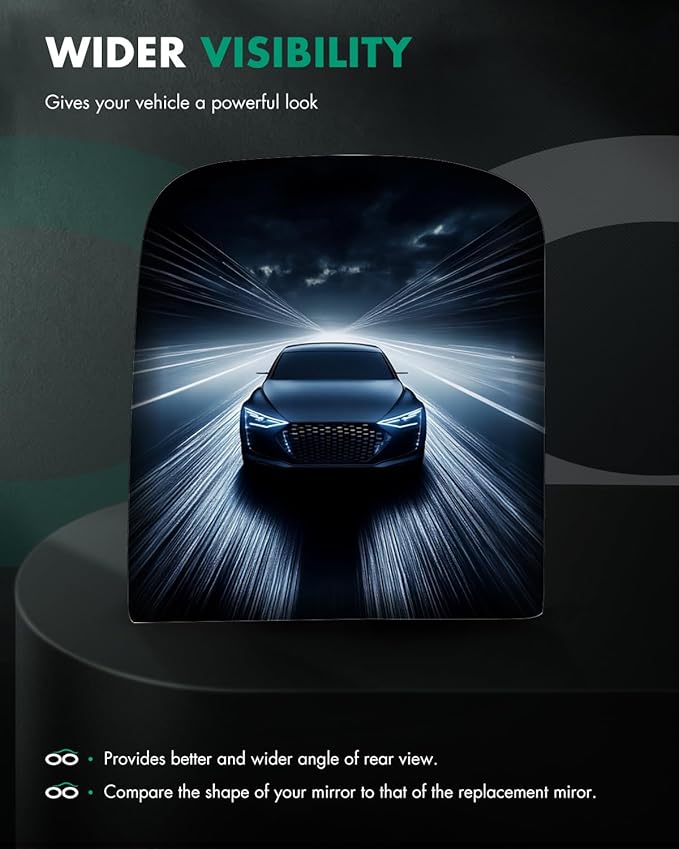 - 🚗More Functions And Style Options - This lens has the following characteristics: Manual Adjustmet,Left Side Upper Flat Glass,Non-heated,No Arrow Lights,No Plastic Backing Plate,With Adhesive Pads,1 Piece.