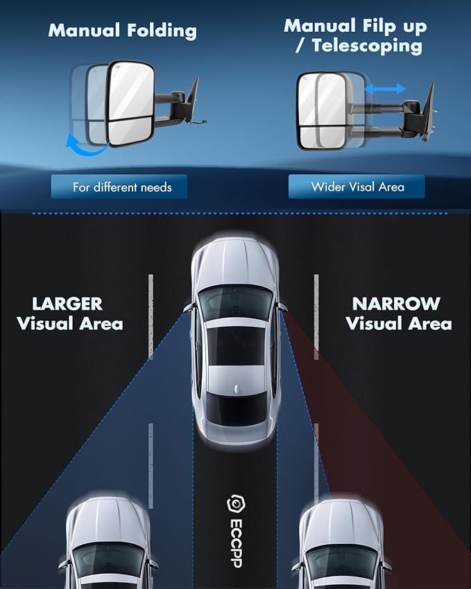 ECCPP Towing Mirrors With 1999-2002 For Chevy Silverado For GMC Sierra 1500/2500/3500 Power Adjusted Heated No Turn Signal Manual Telescoping Folding Pickup Truck Mirrors