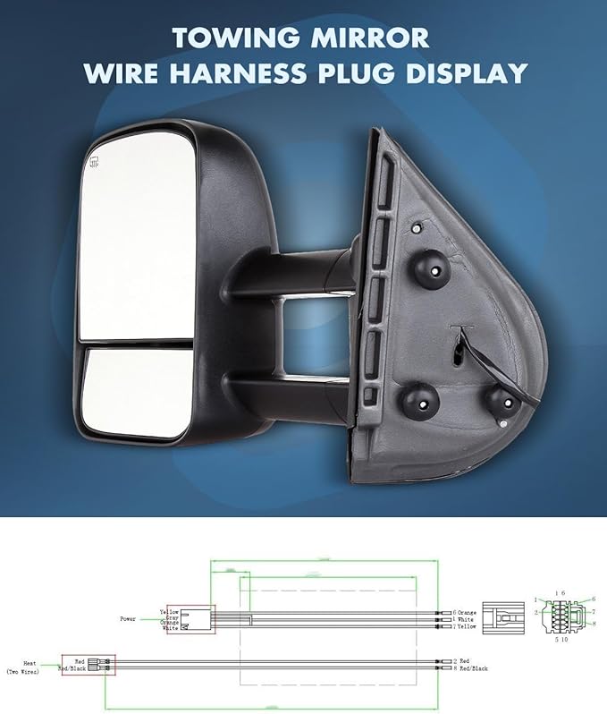 - Multifunction Of Tow Mirrors - Choose from towing mirrors equipped with many different Functions: Power Adjusted,Heated Function,Manual Telescoping and Folding,with Black Housing