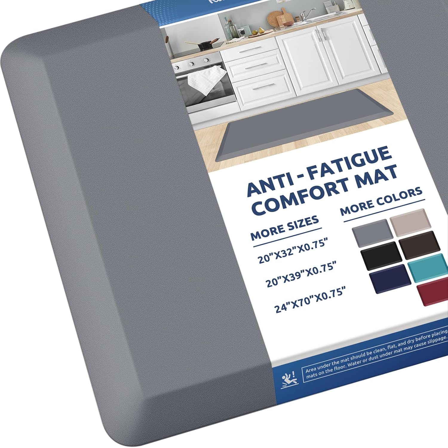 KitchenClouds Kitchen Mat Cushioned Anti Fatigue Rug 20"x39" Waterproof, Non Slip, Standing and Comfort Desk/Floor Mats for House Sink Office (Grey,0.8inch)