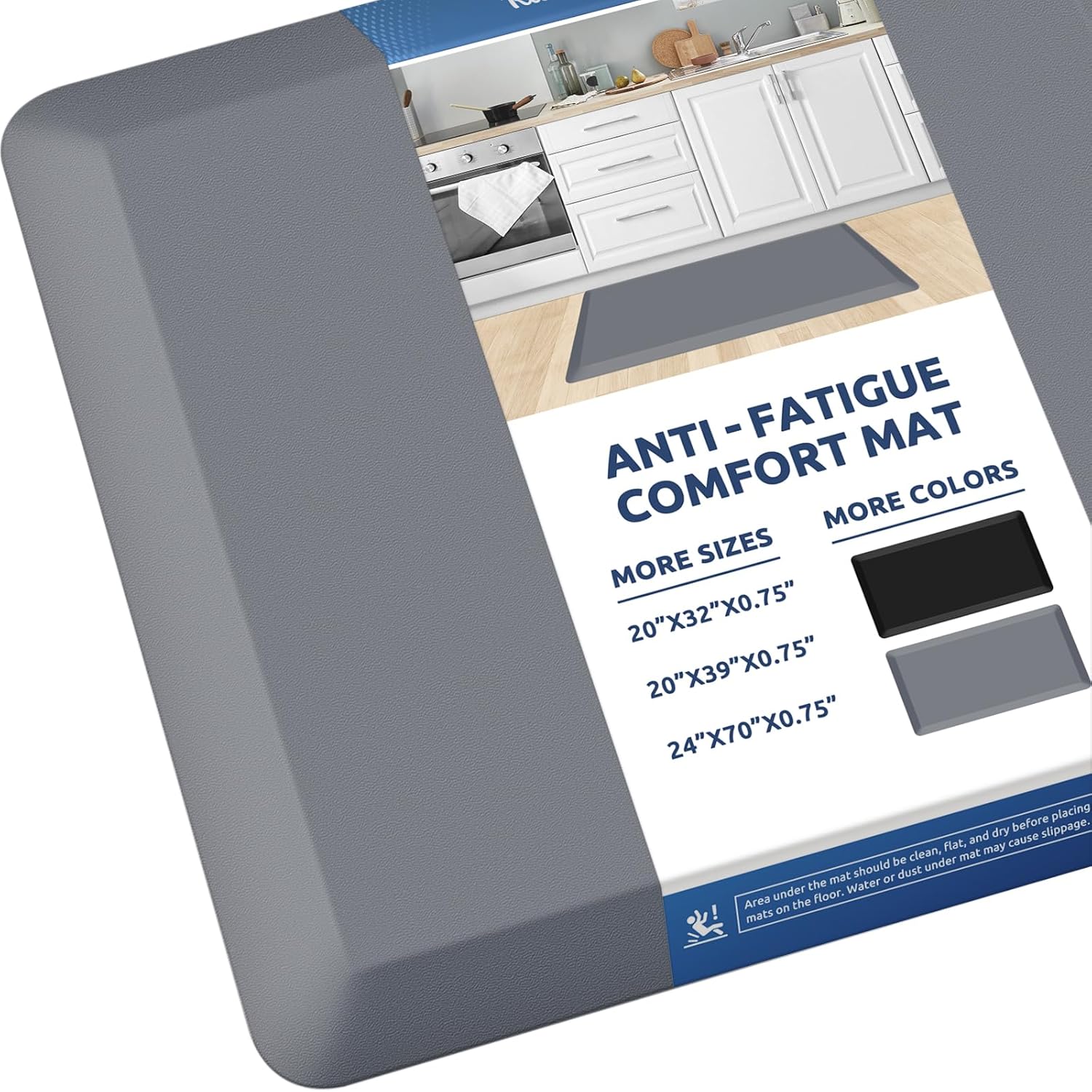 KitchenClouds Kitchen Mat Cushioned Anti Fatigue Rug 20"x32" Waterproof, Non Slip, Standing and Comfort Desk/Floor Mats for House Sink Office (Grey)