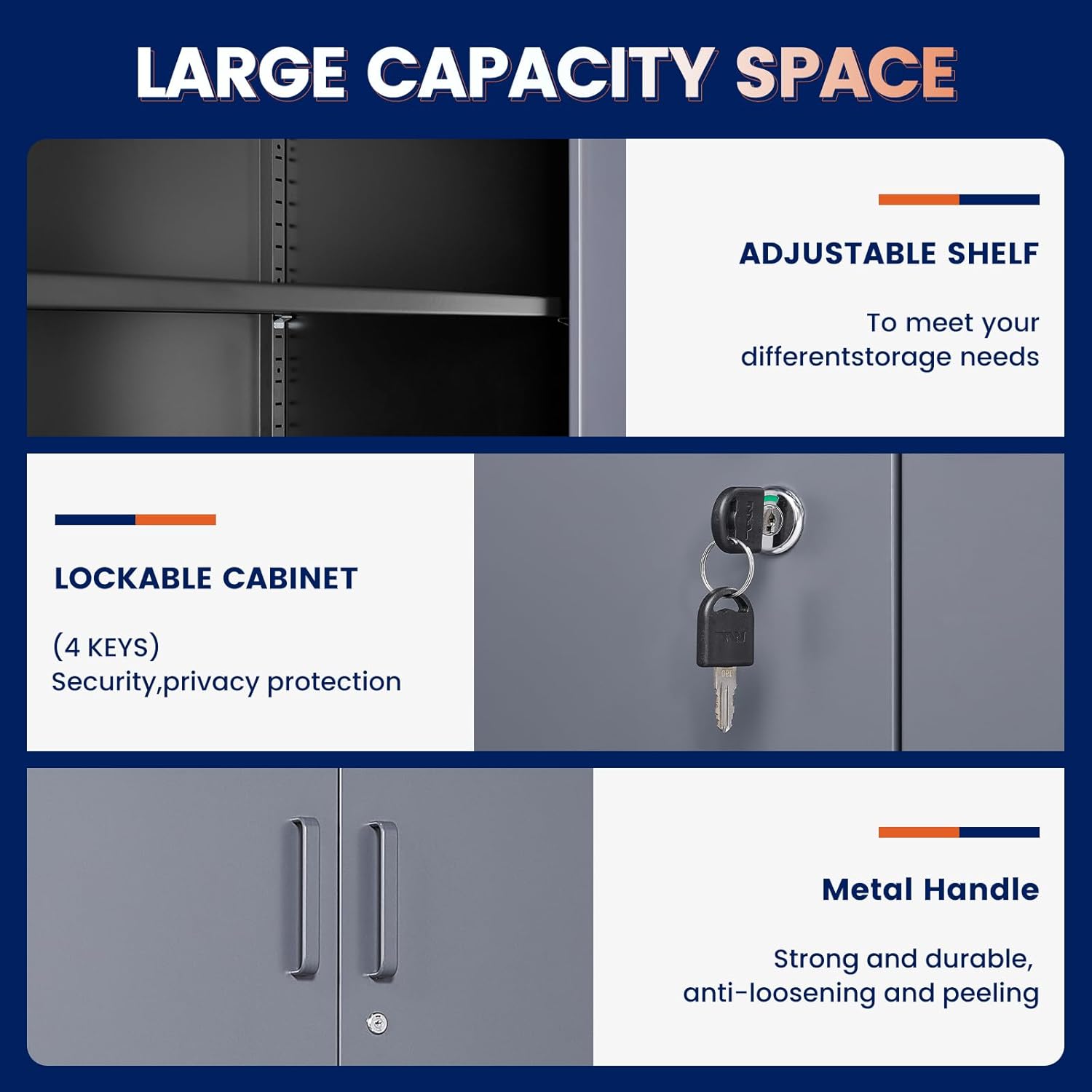 - 『PRACTICAL DESIGN』:Our tall metal cabinet equipped with lock and 2 adjustable shelves to provide adaptability and convenience. High-grade lock picking to secure valuables, two keys are included. Regardless of what your storage needs are, you have the ability to create a unique storage space to suit them.