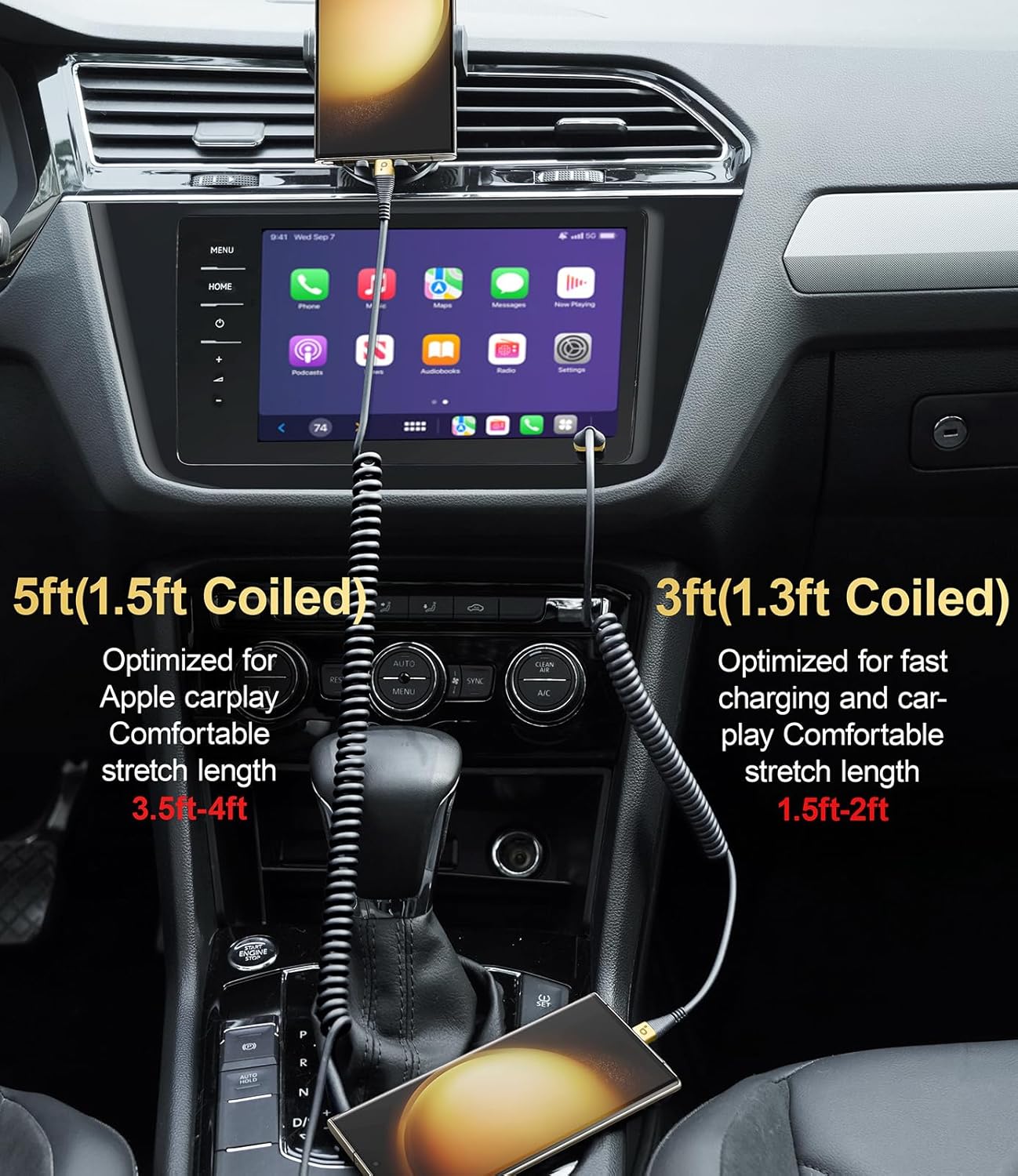 - Elastic Coiled USB C Cable Made for Car: The USB Type-C cable is designed with stretchable, no tangle, no knot, and does not take up space. This coiled USB C charging cable is made of upgraded high quality PU material, which is flexible, easy to stretch, effortless, quick to rebound and not easily deformed.