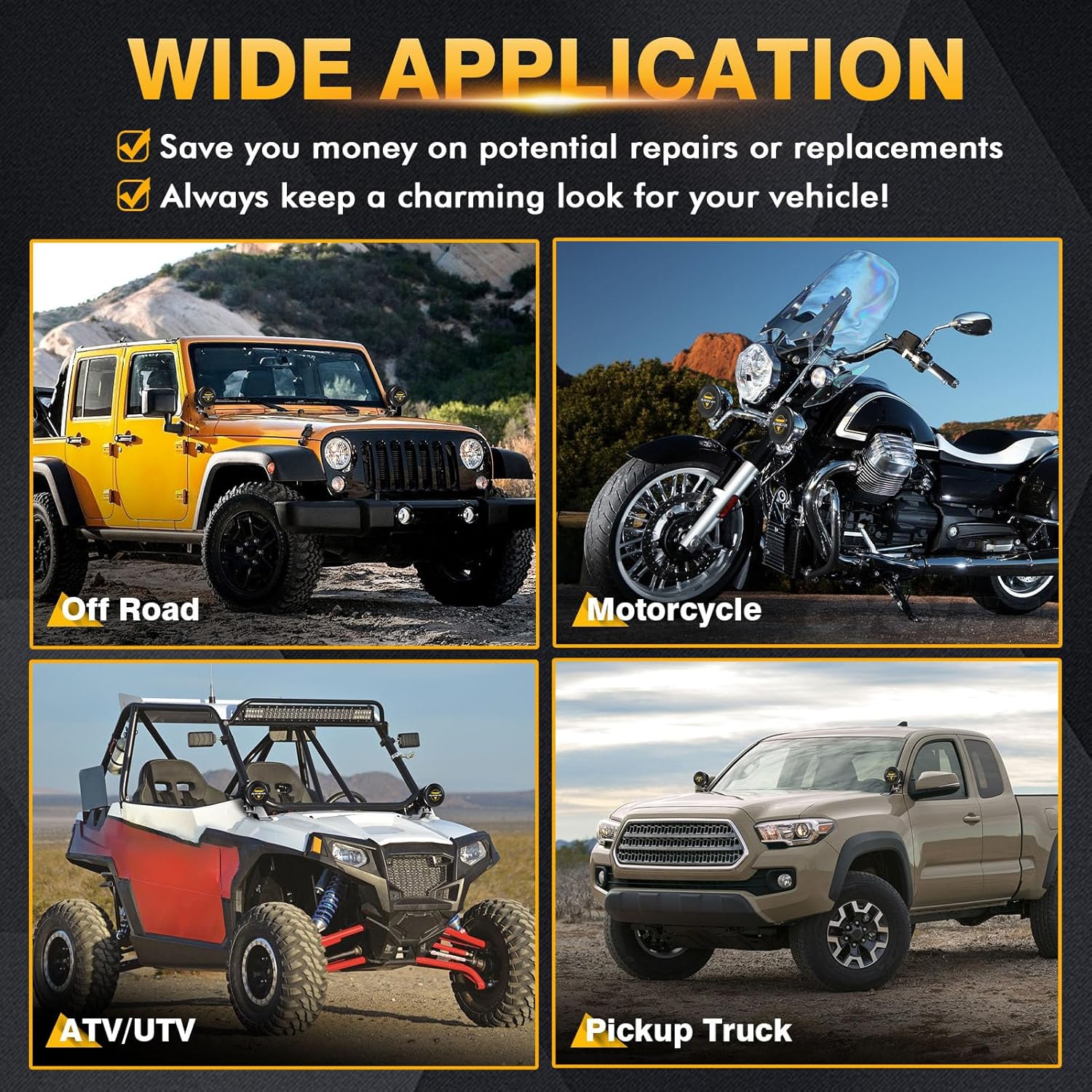 - 【Better Light Protection】Round light cover provides an additional layer of protection, preventing the offroad lights from being damaged by collisions, bumps, and other factors during driving, thus extending the lifespan of the lights.
