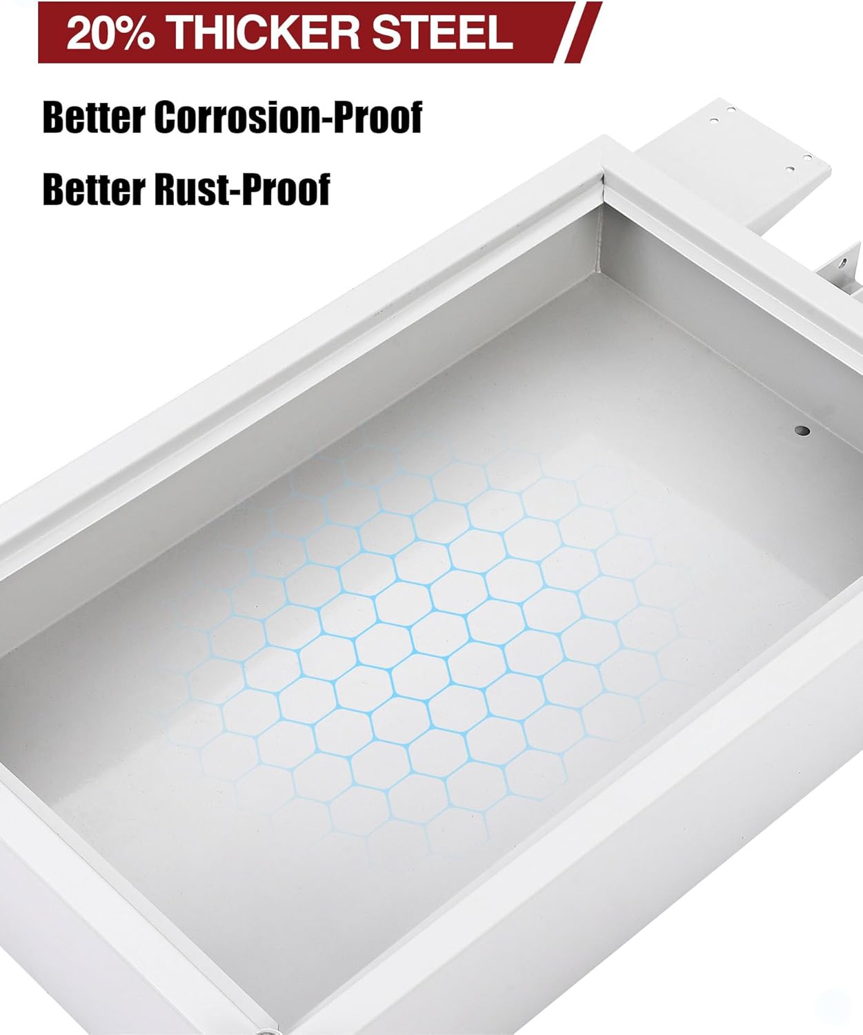 - š[HEAVY-DUTY CONSTRUCTION]- DEXSO 15 gallon oil drain pan is made of thickened steel material, heavy duty for long-lasting durability. It's perfect for frequent use in a garage or workshop, and can withstand the wear and tear of oil changes.