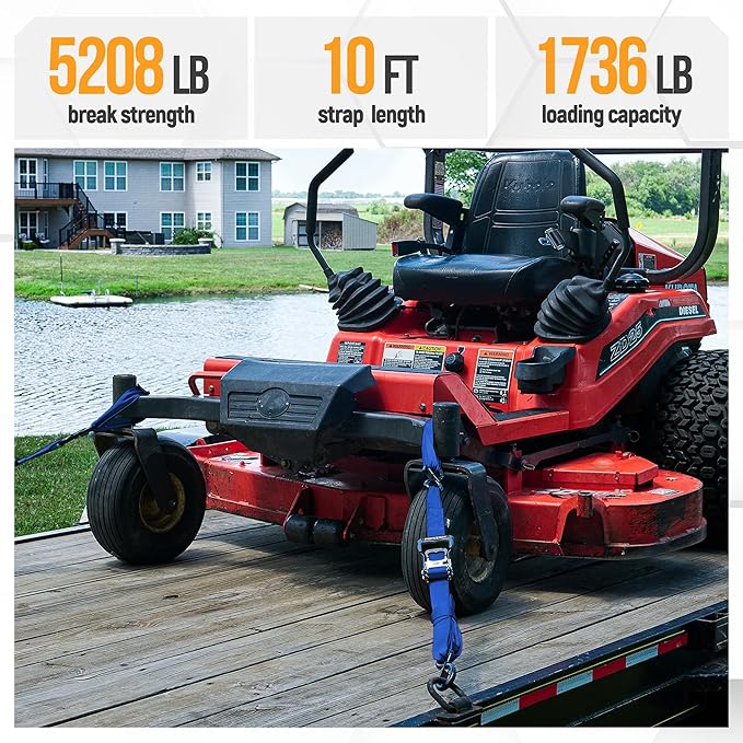 - Multifunctional – Tie down straps ratchet mechanism offers durability and security to transport a variety of objects. Securely tie down your motorcycle, bike, kayak, UTV, boat, ATV, boxes, boat, cooler, & other cargo via trailers, or car roof rack.