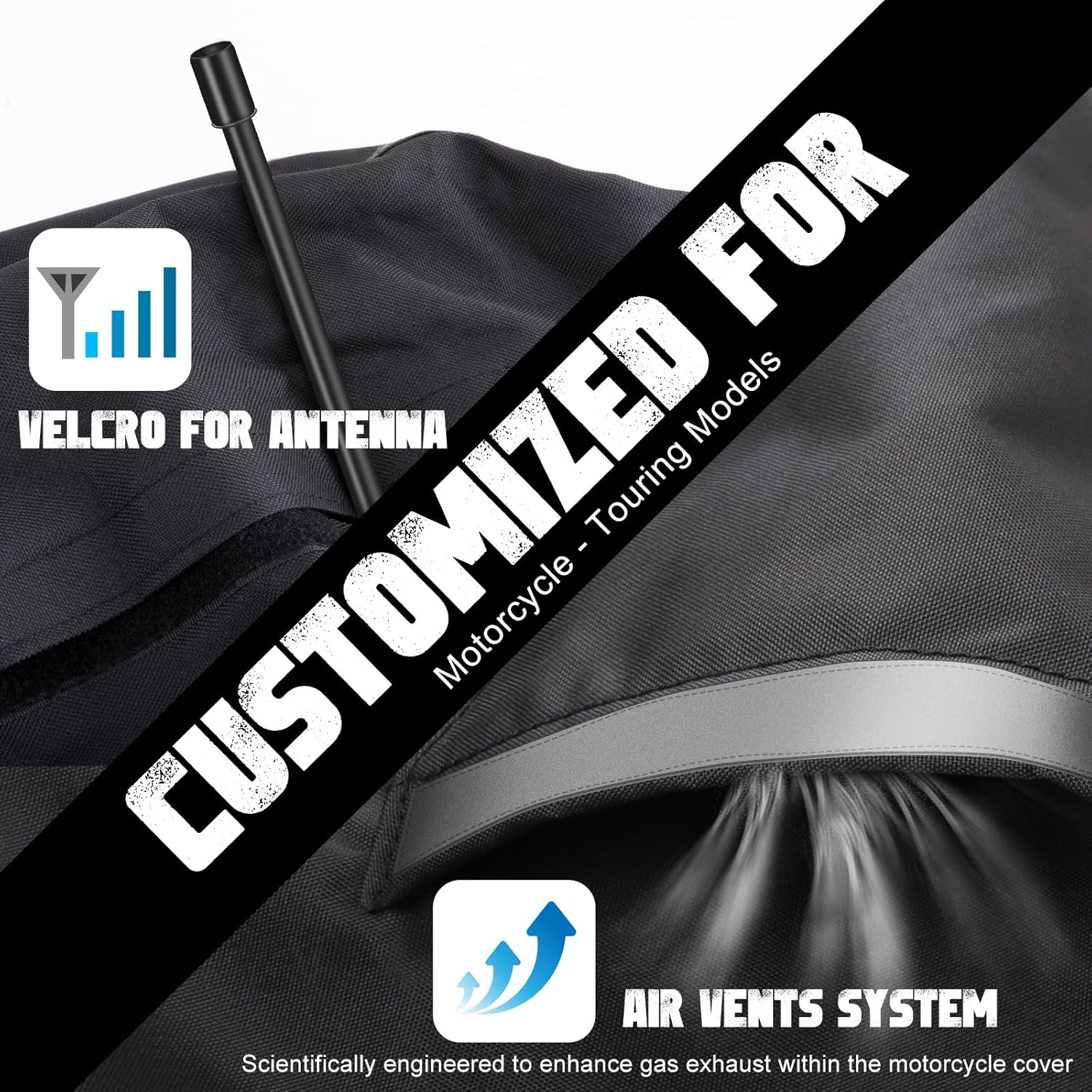 - Suitable for Most Motorcycles: 110 "L x 43" W x 55 "H stereo cutting, Suitable for most motorcycle of touring models,such as Harley Davidson ,HONDA,INDIAN,DUCATI,BMW,SUZUKI,Triumph Tiger,KTM,YAMAHA,KAWASAKI.