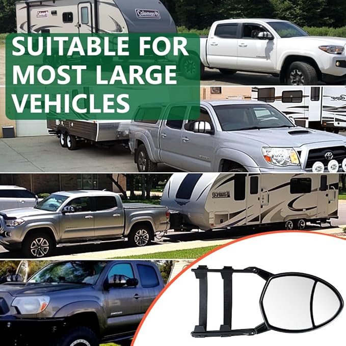 - Versatile and Compatible: Our clip-on towing mirrors are suitable for a wide range of vehicles, including most SUVs, camper trailers, and utility trailers, etc. Drive with confidence and peace of mind.