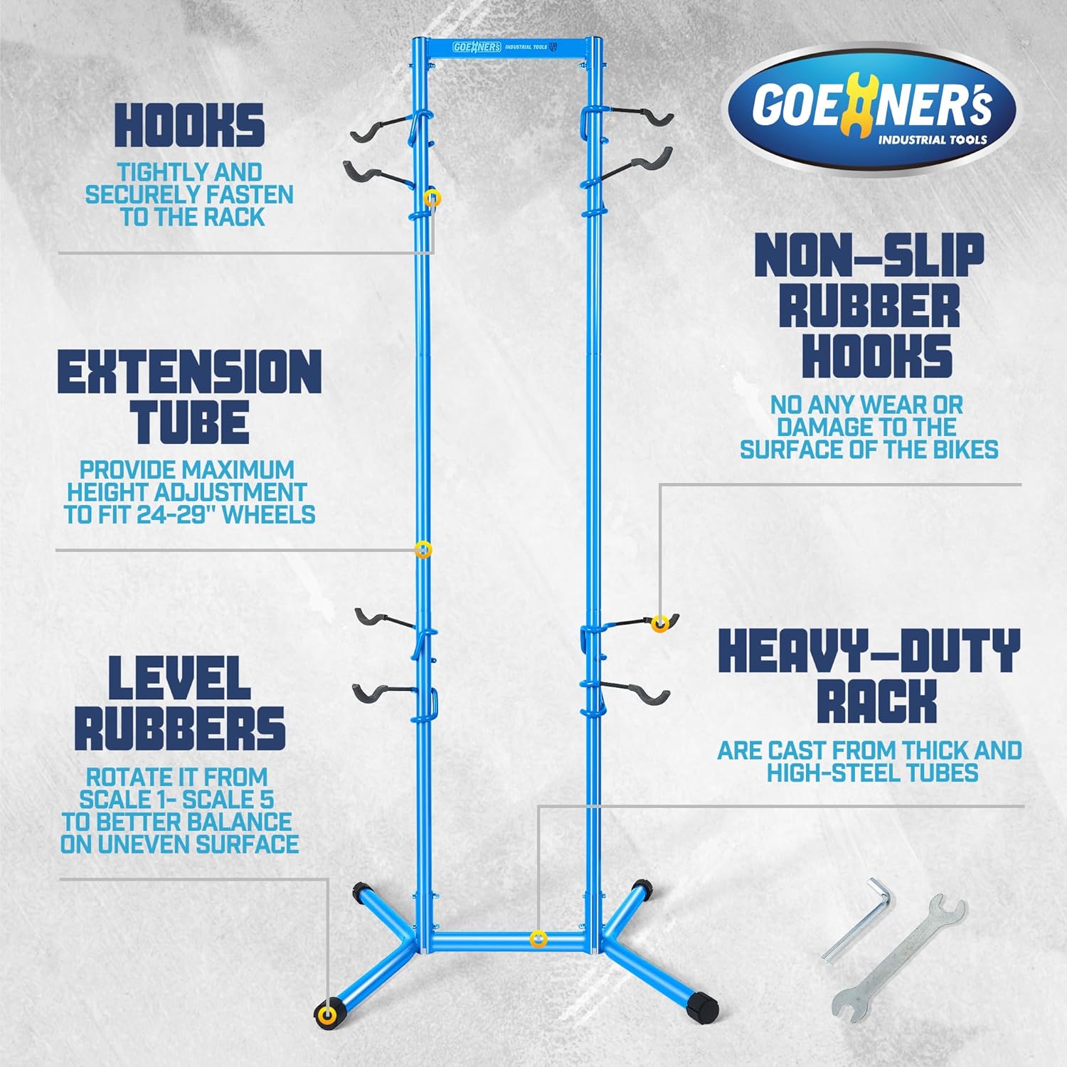 - [Adjustable Support Arm Design]: The support arms have an adjustable feature, ensuring compatibility with a wide range of bike styles and frame shapes, accommodating 24-29" wheels. Moreover, the hooks are coated with non-marking rubber to safeguard your bike frames.