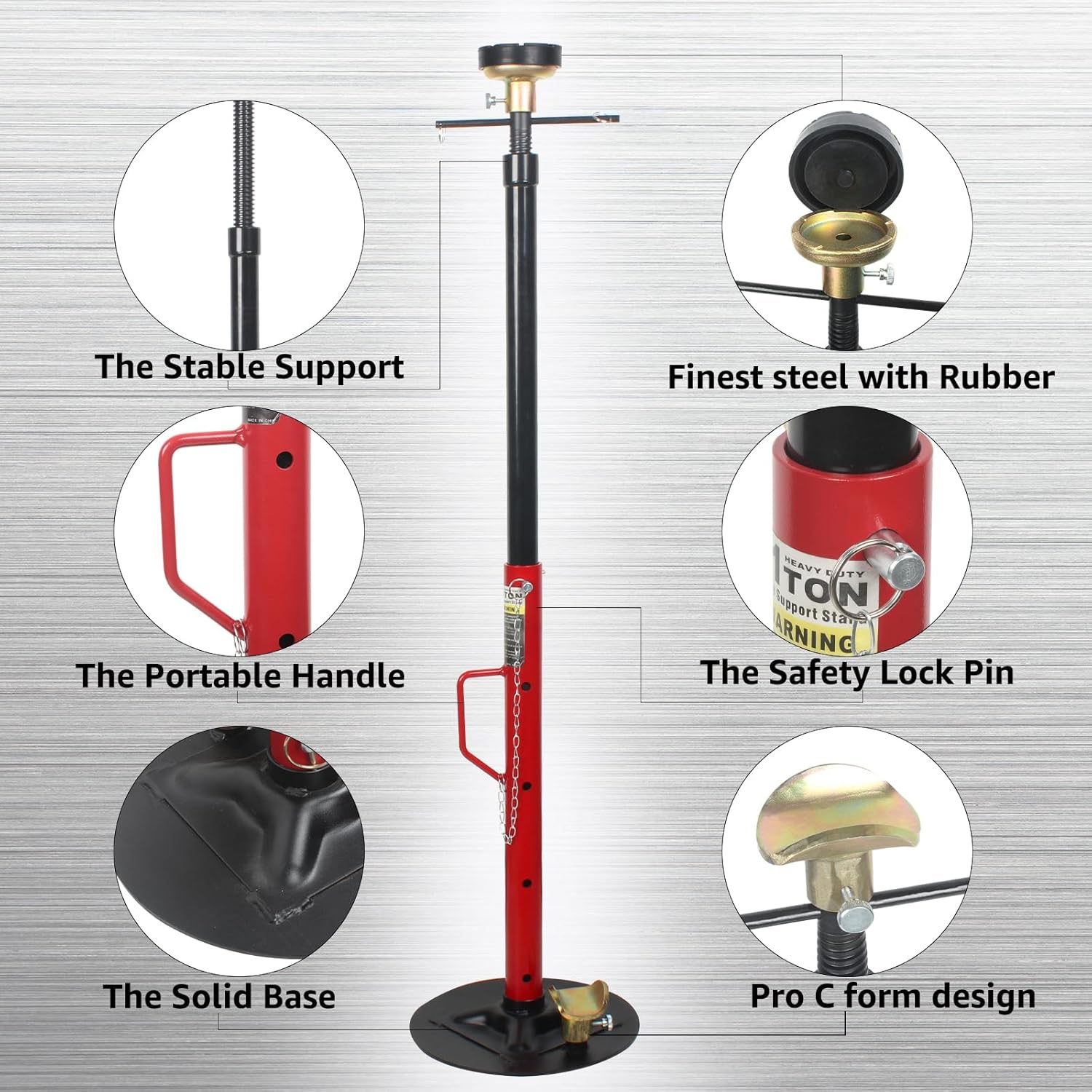 - 【Stability and Portability】The tall jack stands combination of secure fastening, adjustable holes, interchangeable tops, and a convenient handle ensures both stability and ease of use, making it suitable for various applications in a portable manner.