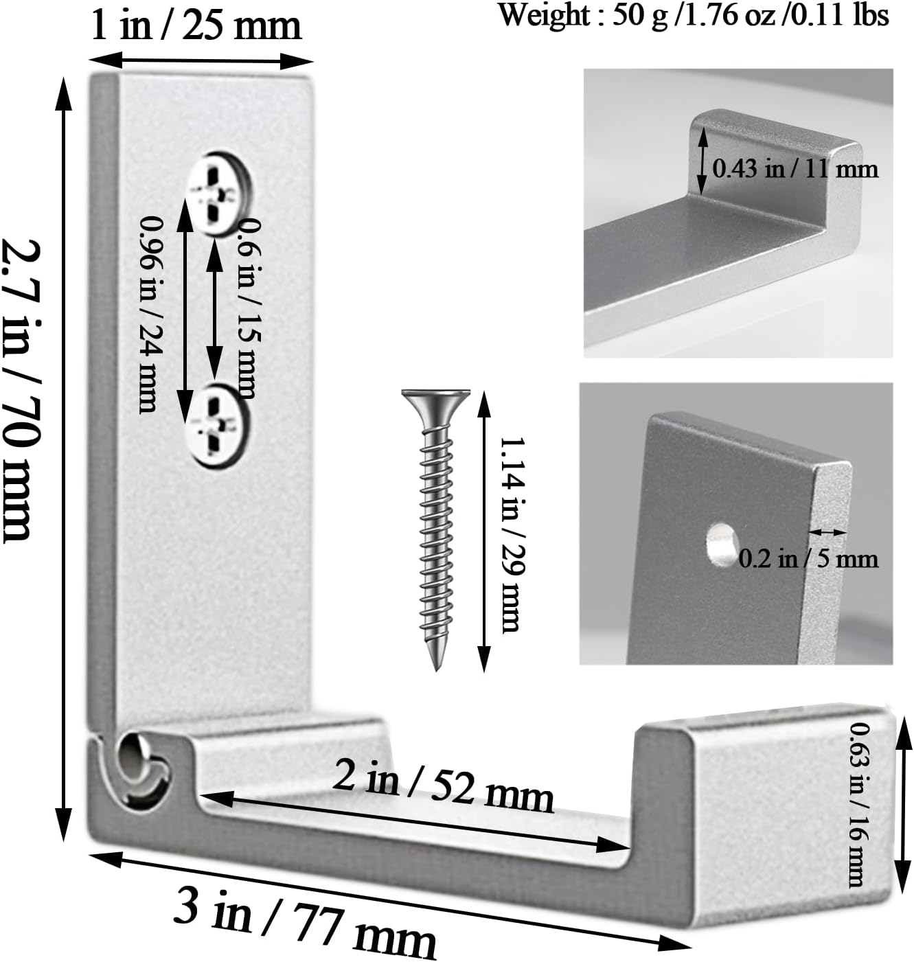 - Easy to install: Comes with installed screws, which can be installed quickly and safely on wooden boards, concrete walls