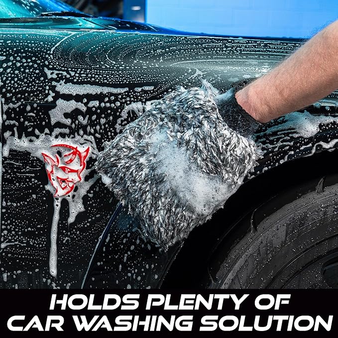 - Pack of 2 premium microfiber wash mitts measuring 10 inches long and 8 inches wide