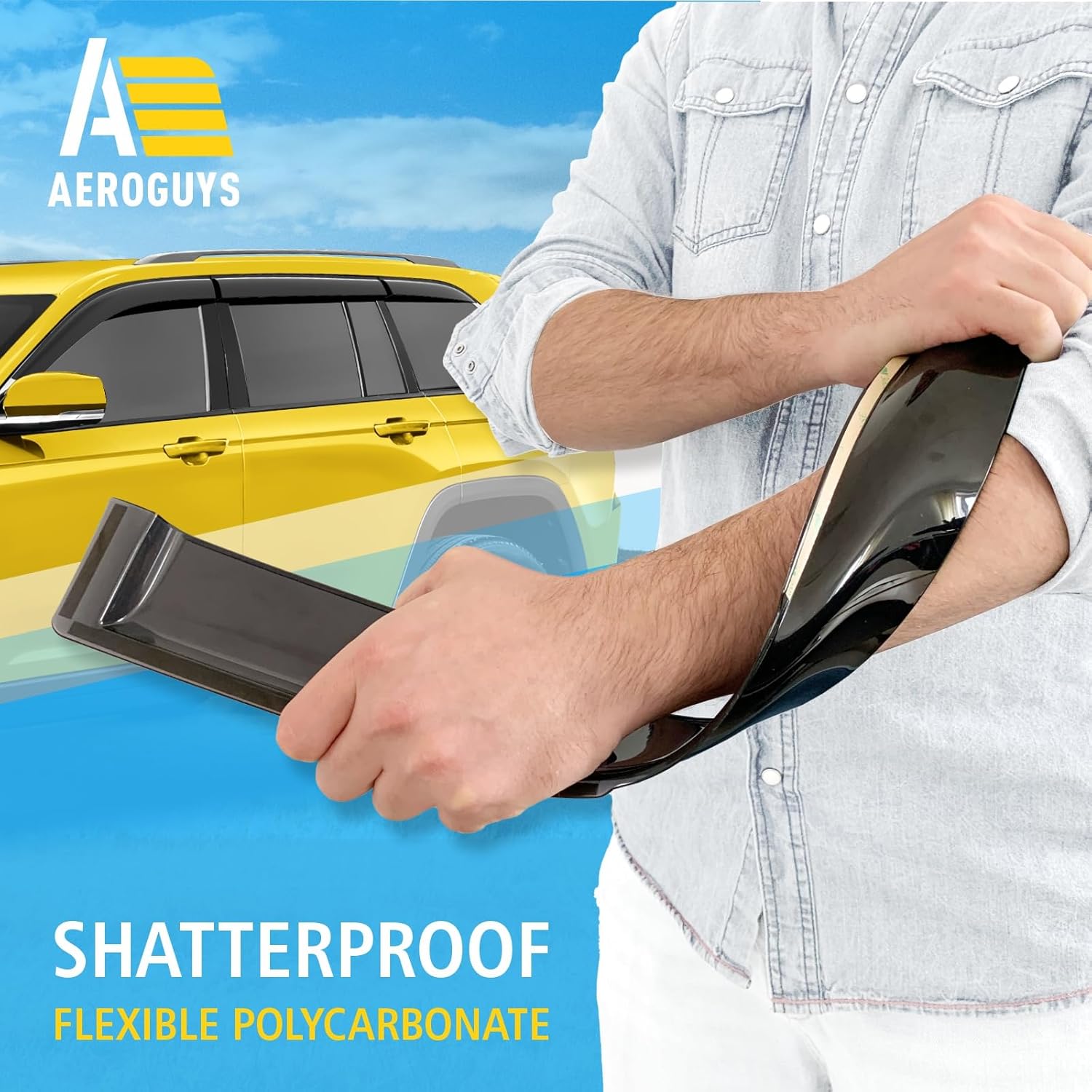 - Incredibly Durable AEROGUYS Auto Window Deflectors β They are made with strong and tough polycarbonate which is clear and scratch-resistant. They also provide UV protection making your ride more comfortable under all weather conditions.