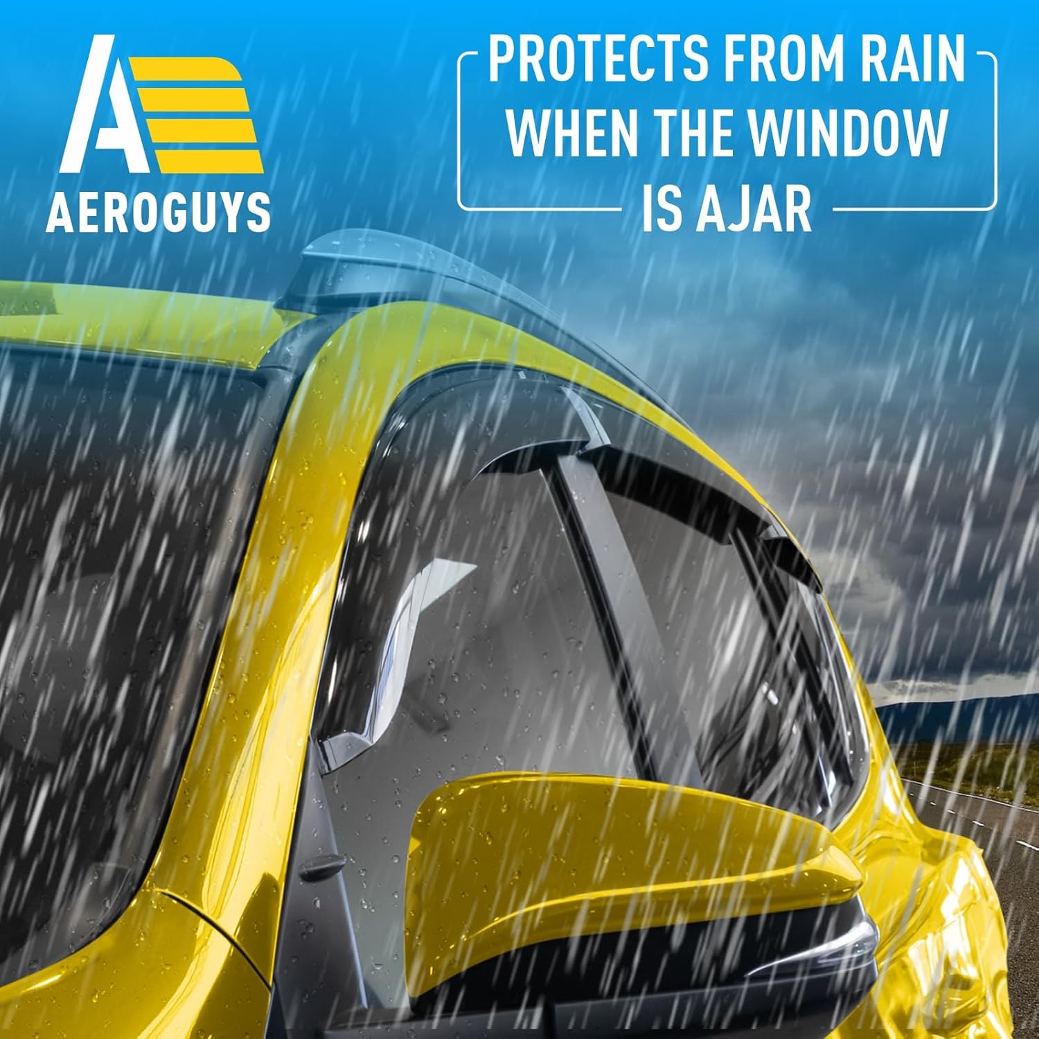 - No Tools Needed, Quick and Easy Assembly β These rain guards are very easy to fit. TAPE-ON INSTALLATION provides perfect fit for your SUV. Just slip it onto your carβs window and your job is done within minutes. There is no drilling or no tools required. Be sure that AEROGUYS window deflectors are water resistant, sun protective and will not bend, break or crack regardless of the weather conditions.