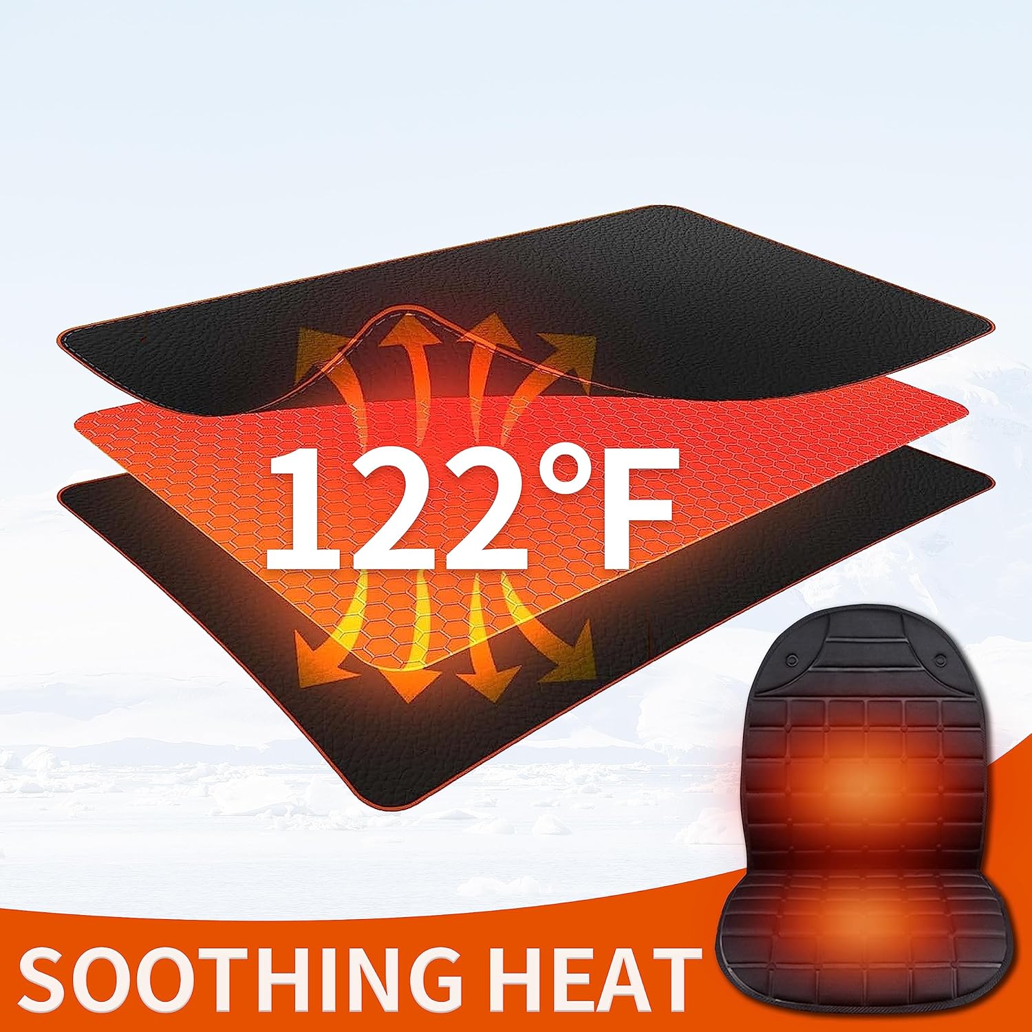 - Fast Heating & Safe: Our heated seat warmer has 2 heating levels for back and seat area, provides heat for back and hips, thighs.This heated seat cover heats up in 1 minute. The overheating protection system is designed to ensure the safety.