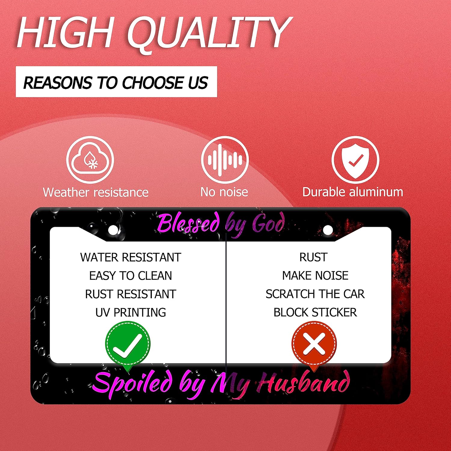 - Design:Use Advanced digital printing Protects license plate frames from Whether it's a car wash, heavy rain or hot weather, it still looks brand new,Let your car still be unique and stylish while driving on the road