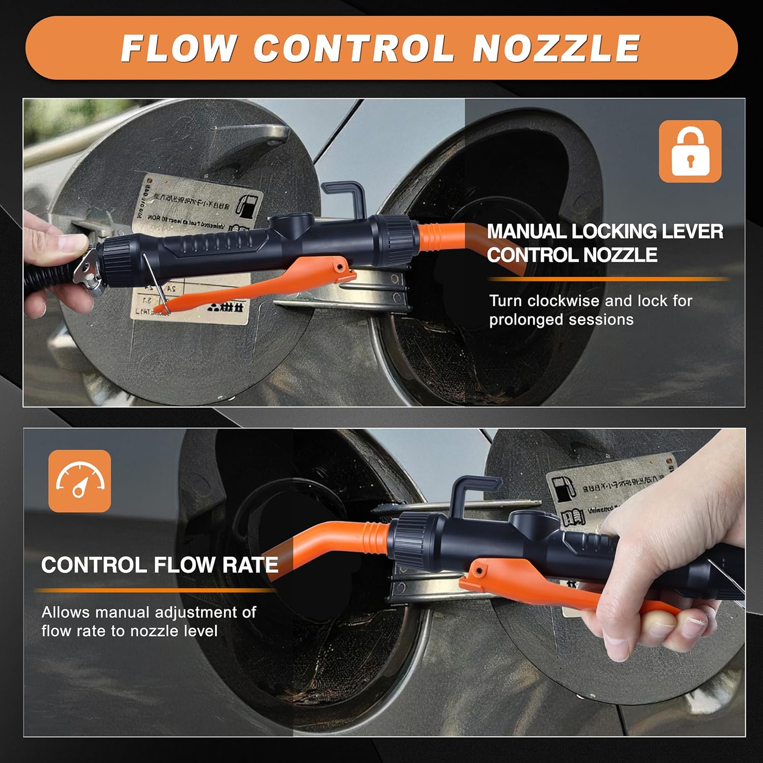 - FUEL UP ANYWHERE: The siphon pump is lightweight and easy to transport, pumping up to 8 liters/2.2 gallons/9 quarts per minute, Built-in locking clip secures nozzle to receiving container for a hands-free experience,so that you can complete the work more efficiently!