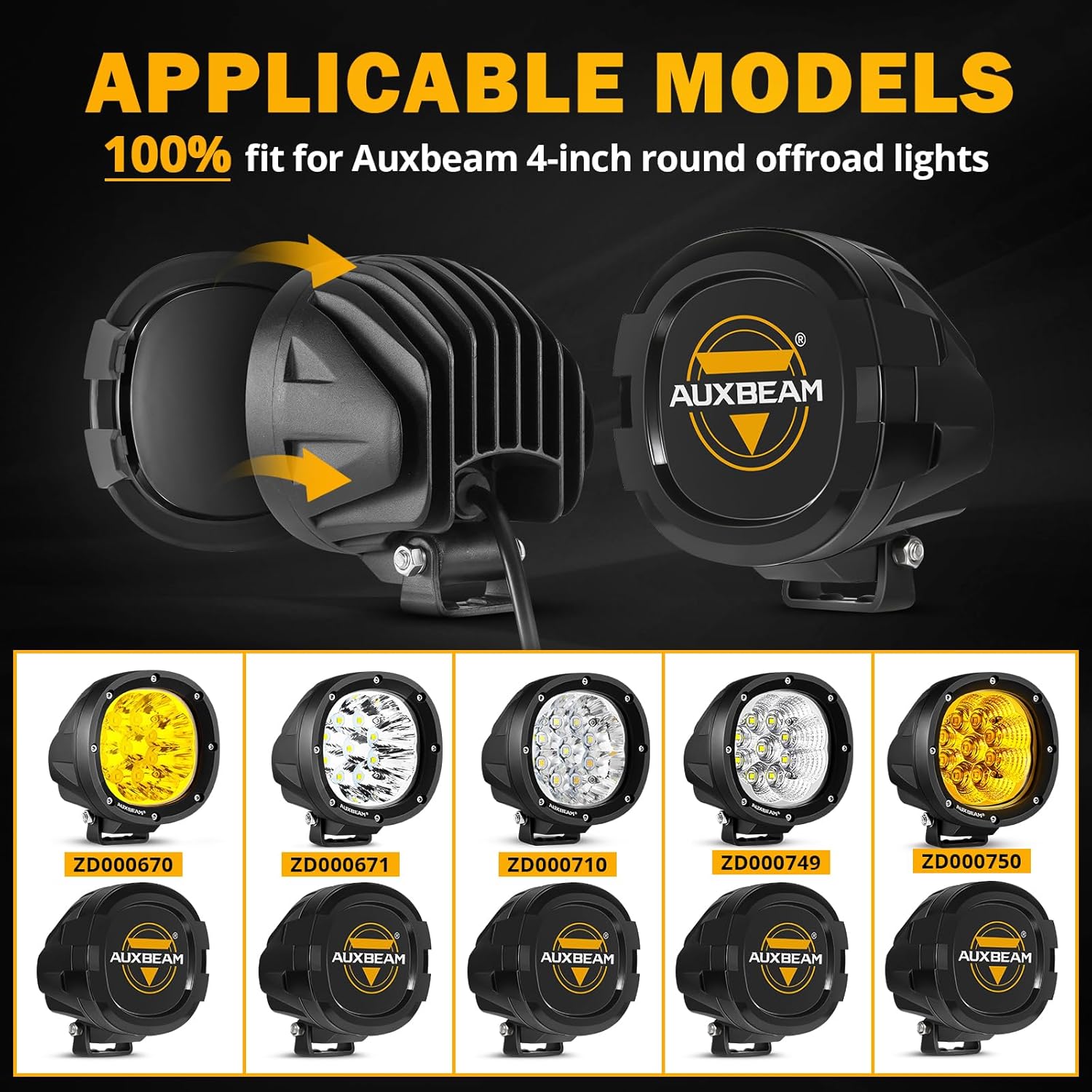 - γWide ApplicationγLight Covers Size: 5.51 *4.92 *2.95 inch(14cm*12.5cm*7.5cm). They fit perfectly with Auxbeam specific models ZD000670(ππππππππππ), ZD000671(ππππππππππ), ZD000710(ππππππππππ), ZD000749(πππππππππ π), ZD000750(ππππππππππ). The black cover also fits most 4" LED round pods, LED cubes, fog lights, and work lights on the market.