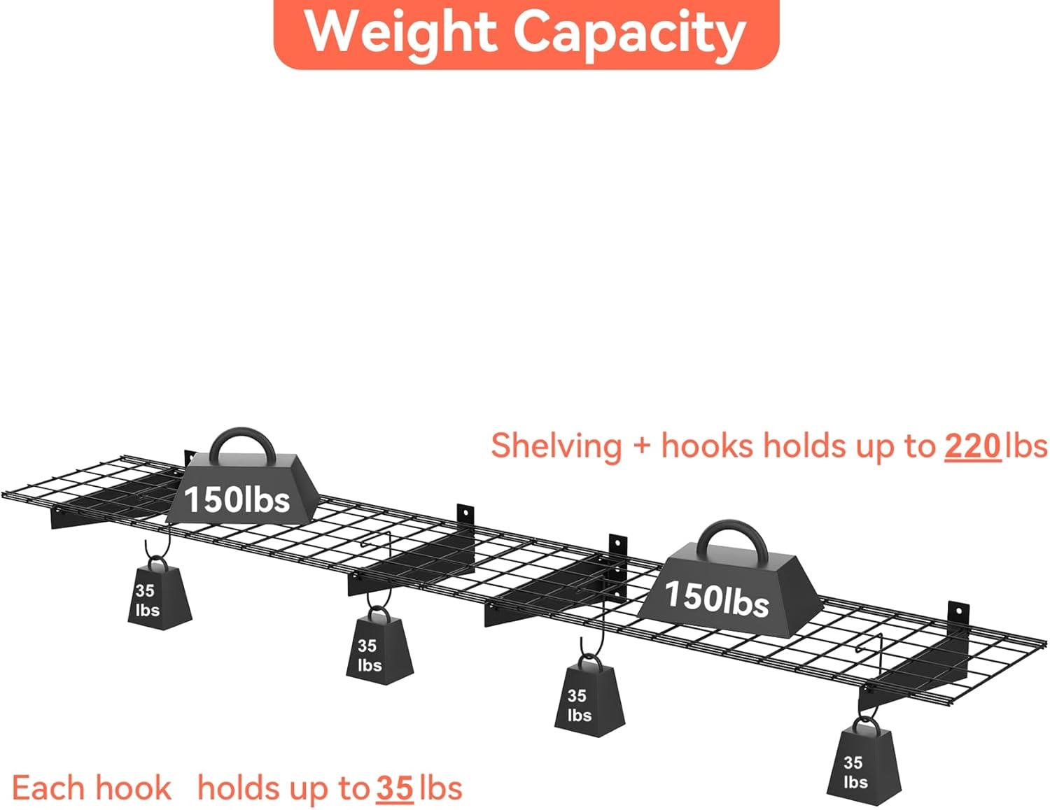 - Solid & Well Constructed: Garage wall mount shelving is made of high quality steel with powder coated finish and well constructed. Holds up to 220lbs/shelf.