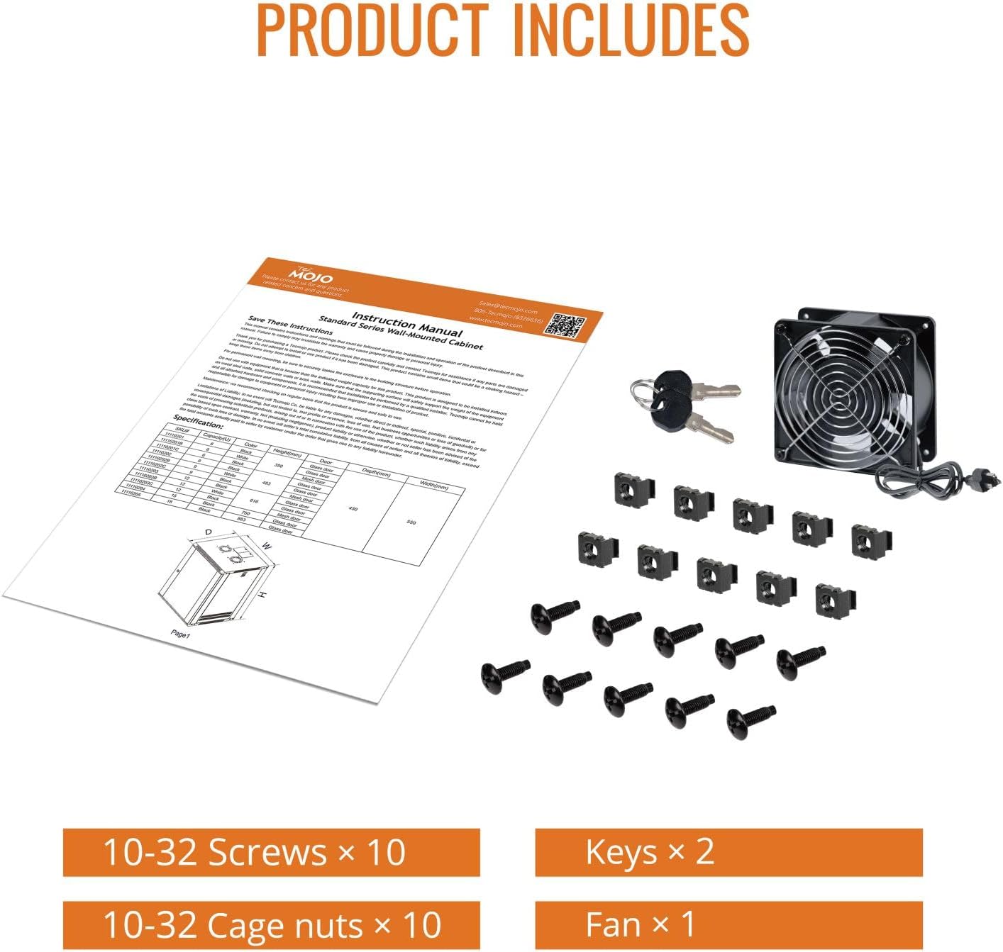 - Ventilation and Security: one-built-in top fan(with power cable) and flow through mesh doors to prevent overheating of the network rack