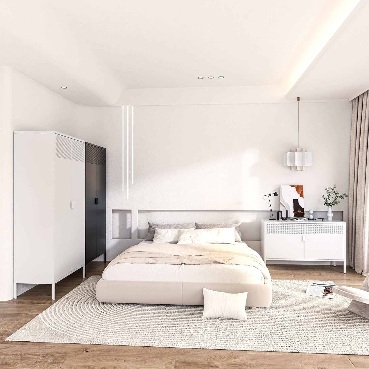 2 Door Storage Sideboard, Metal Storage Cabinet with 2 Adjustable Shelf,Multipurpose Metal Accent Cabinet for Office Home,Music Studio (White, 25''H)
