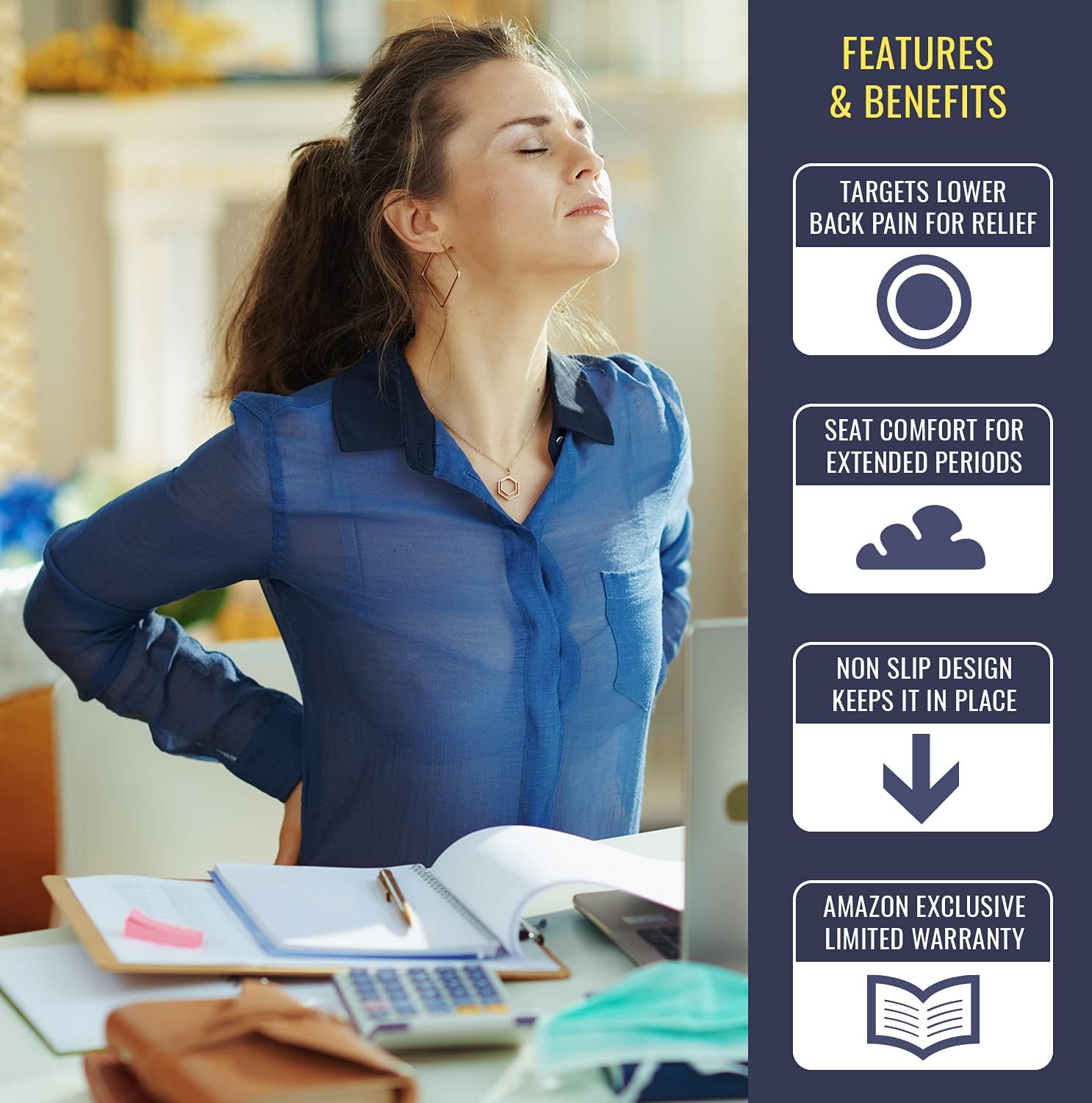 - SEAT PILLOW with 3 inch opening provides pressure relief for the coccyx and helps reduce stress on your lower back.