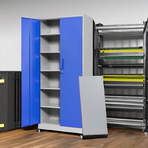 Letaya Metal Garage Storage Cabinets with Lock Door and Adjustable Shelves, Steel Tool Cabinets for Home,Office,Warehouse Organisieren (Blue Gray)