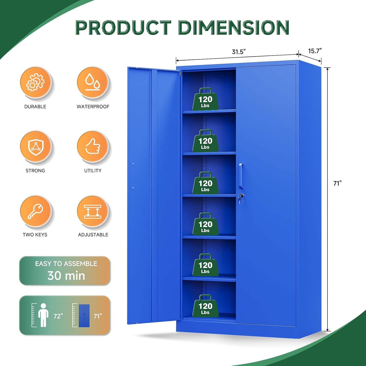 - 『Large Storage Space』: Steel garage storage cabinets H71 * W32 * D16 inch , features 5 adjustable shelves, can hold up to 180 lbs;Perfect for use in homes, offices, garages, schools, shops, warehouses or other commercial spaces.