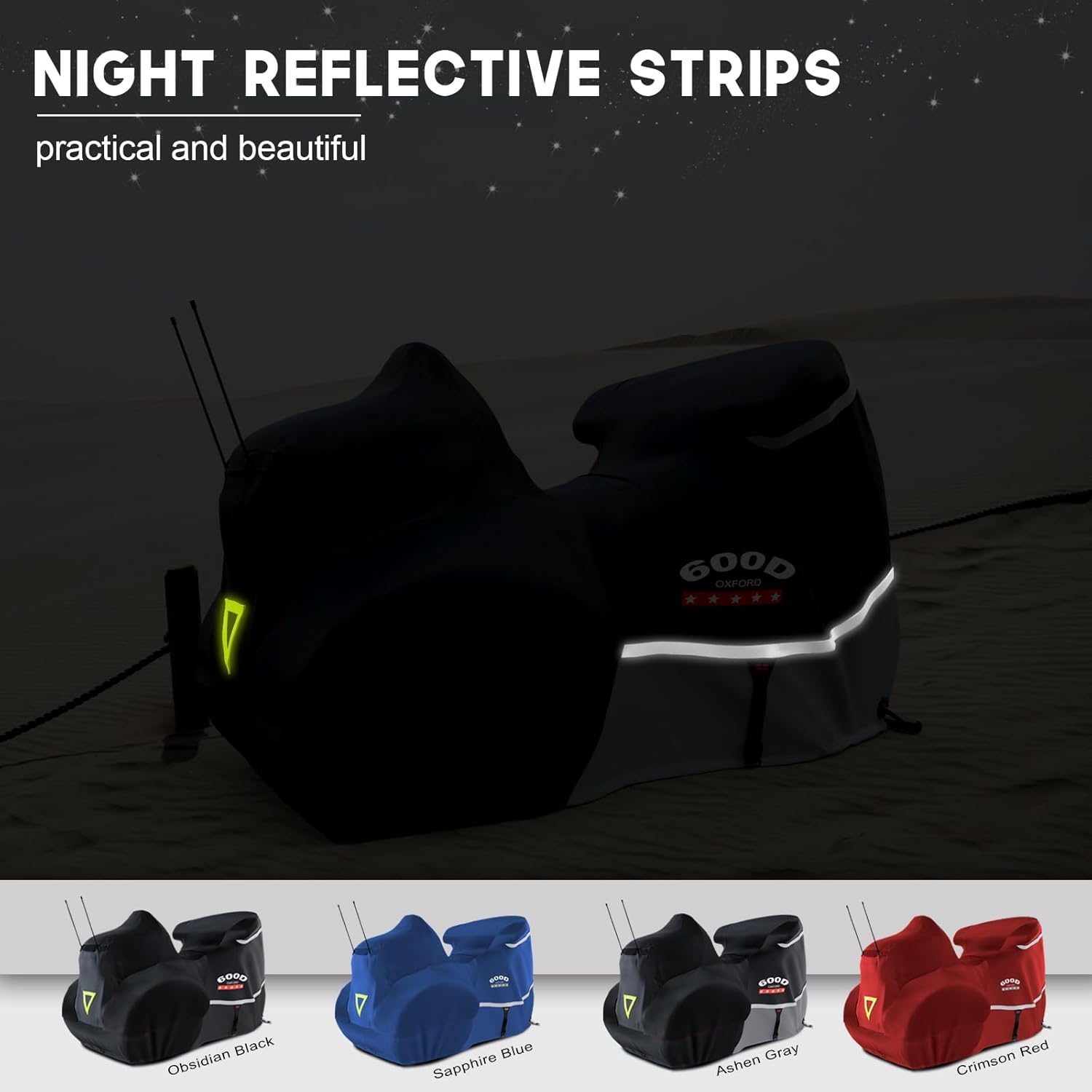 - 【100% 600D Oxford cloth】: The motorcycle cover, weighing 6.8lb, is almost thicker and solider than those on the market. The fabric is resistant to aging and ripping, and UV proof, dustproof and rainproof.