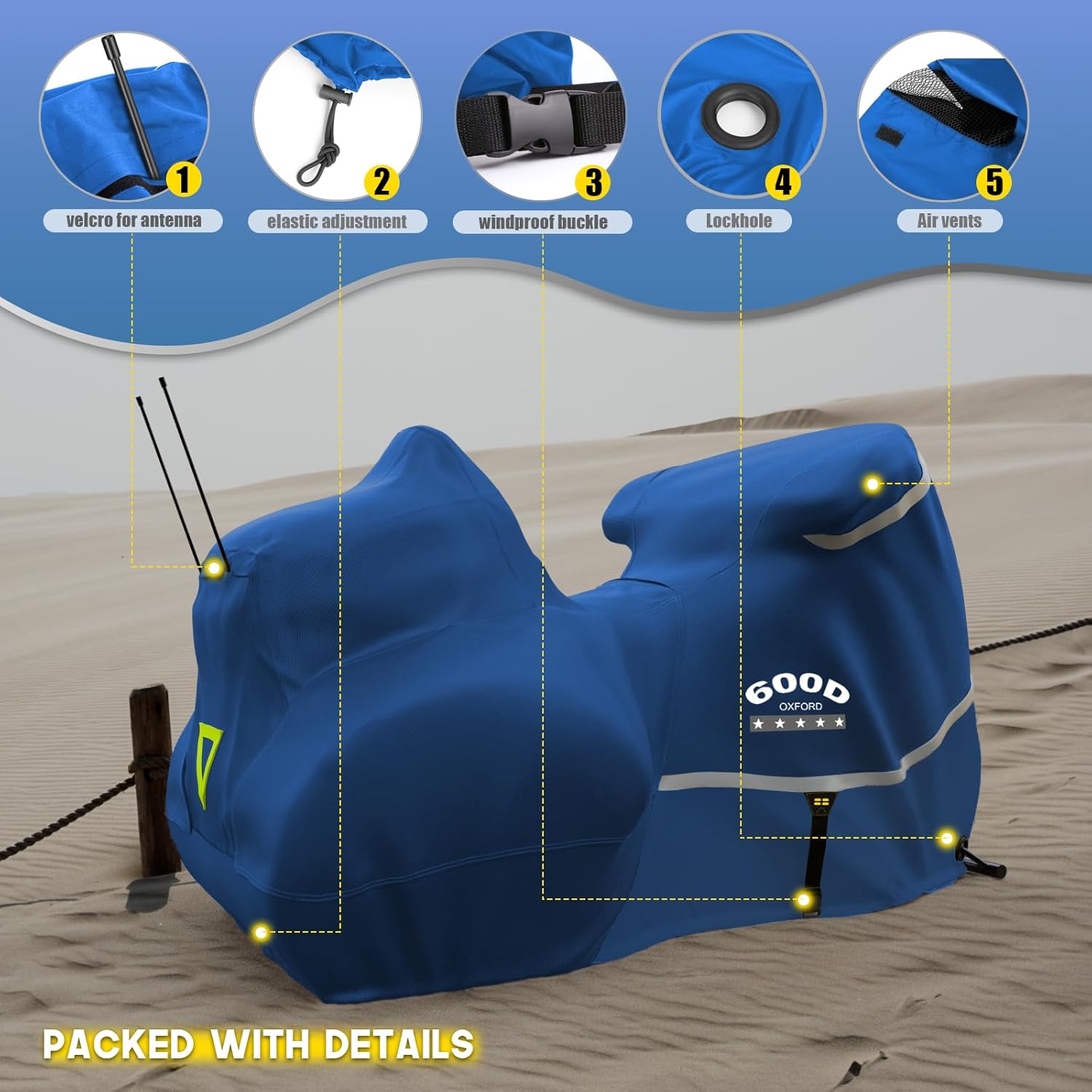 - Coverage : waterproof, dustproof, UV protection, adjustable windproof buckles