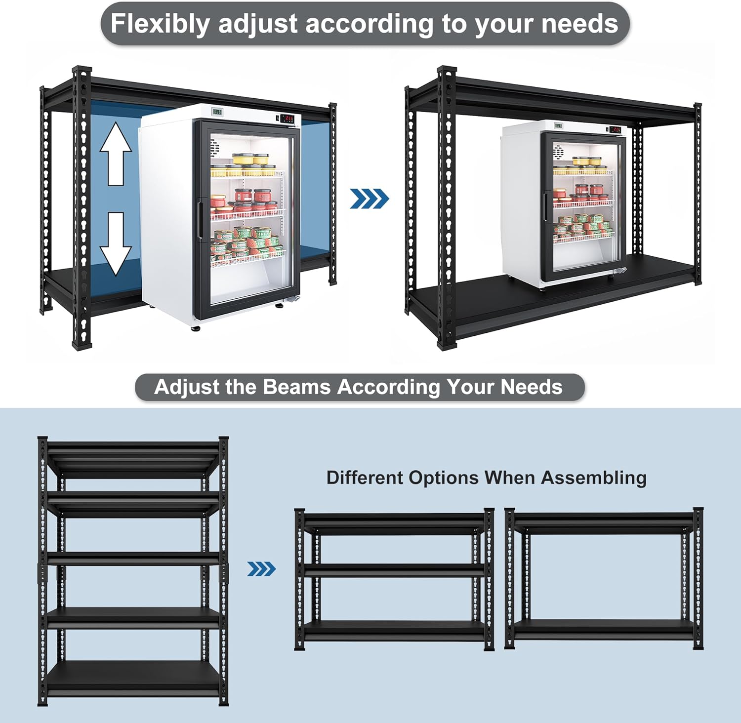 - 【Gerat Storage Capacity】Instead of flimsy wires and wooden board,our garage shelving is made of all metal shelves,thickened beams and walled uprights. What we present to you is an enhanced structures complete the unit with 2250 lbs bearing capacity.