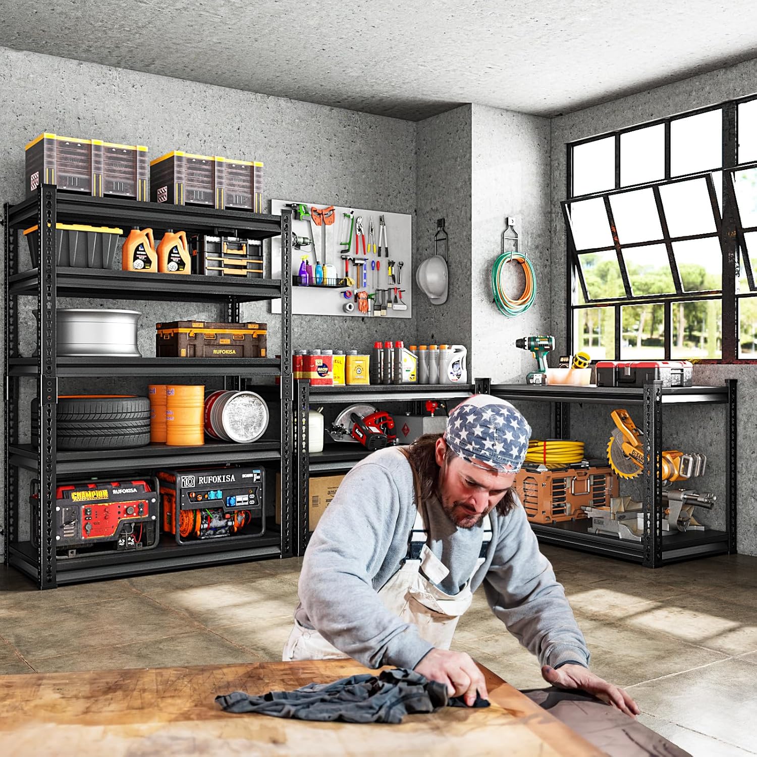 - 【Large Size Storage Shelves】Rufokisa 5-tier metal shelving unit with size of 40"W*18"D*72"H,which provides sufficient storage space and holds tons of items. It will works perfect for your garages, warehouses, basements,kitchens, pantry, basement etc .