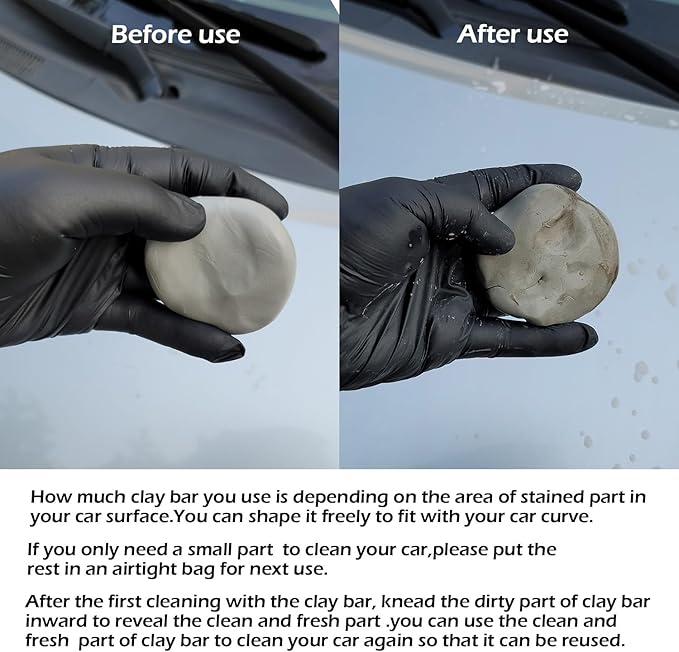 - đăQUALITY MATERIALăFlexible clay technology let auto clay bar fit with contours and curves of cleansed area in your car. Premium professional quality clay bar capable, safe for all aluminum, chrome, fiberglass, paint and finishesďźmakes rough vehicle paintwork feel smooth as glass.