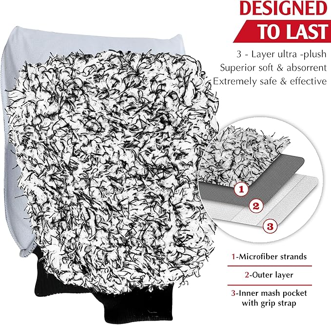 - Versatile Application: These detailing supplies are not limited to cleaning the car's exterior surface, they can also assist with exterior painting and refinishing. Whether you own an SUV, sports car, sedan, crossover, coupe, minivan, or any other vehicle, this mitt holds an ample amount of suds for effective dirt and grime removal.