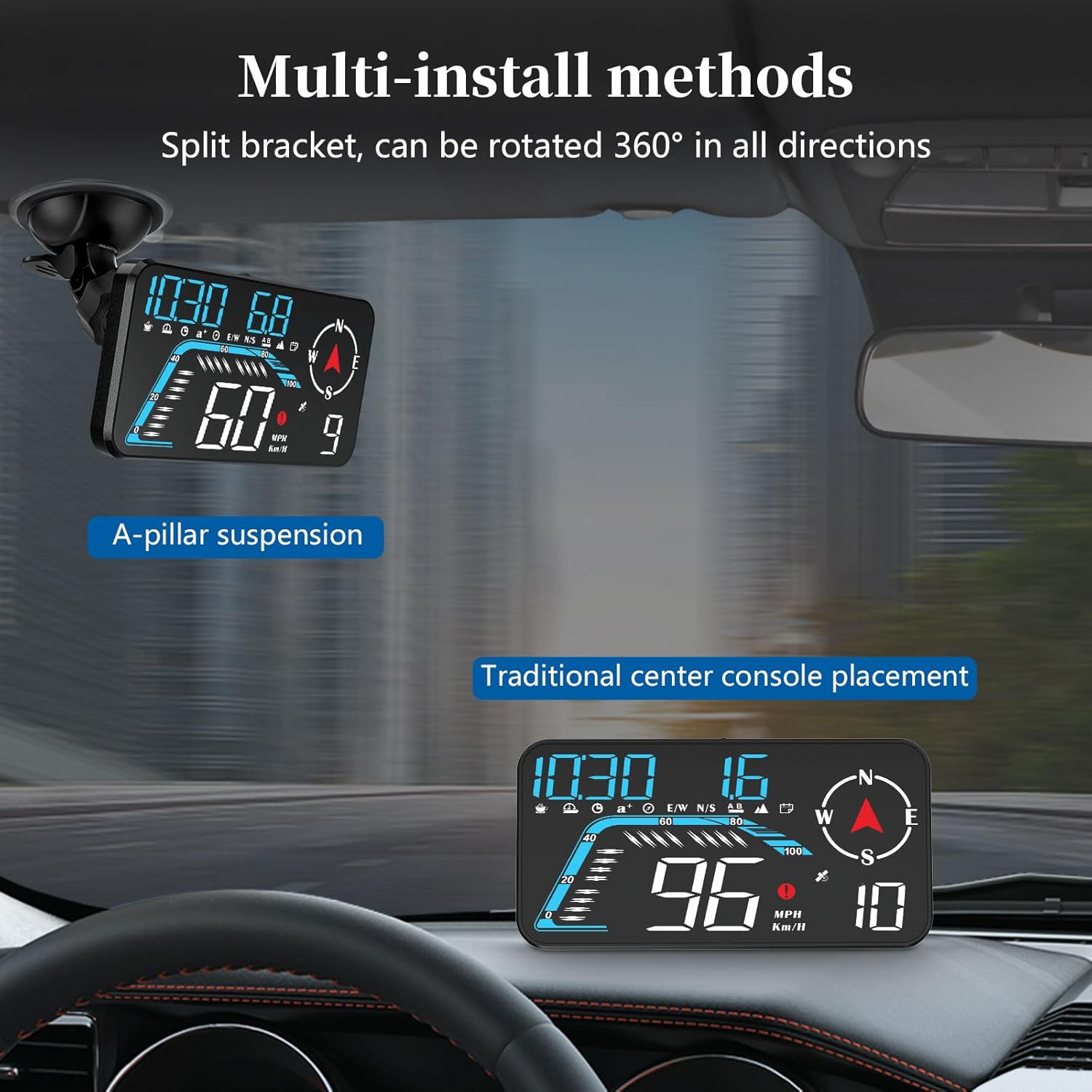 - 【Installation】USB cable connection, plug and play, installation in 5 seconds. The package comes with a 360-degree rotating bracket, which can be installed in various ways, such as hanging or center console