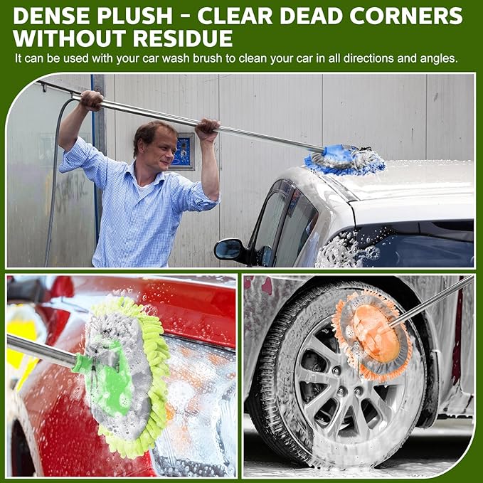 - Efficient Car Cleaning Solution: keep your car's finish looking nice with our microfiber car wash brush; The chenille scratch proof replacement heads securely attach to your mop handle to effectively but gently clean off dirt, dust, and debris from your vehicle's surface, preserving your car's paintwork