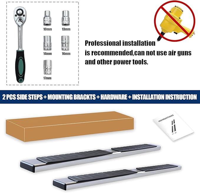 - EASY TO INSTALL:Just Mounted It , Direct Bolt On , No Need To Drill. And Also Each Bar Can Support Up To 500lbs.include Two Steps ( One Left And One Right ) Mounting Brackets & Hardware & Installation.