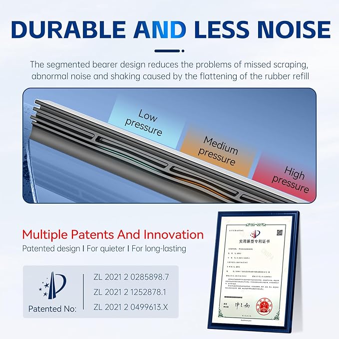 - [0 STREAK WIPING AND QUIET] The wipers are curved and fitted to the windshield, achieve quiet and trackless wiping
