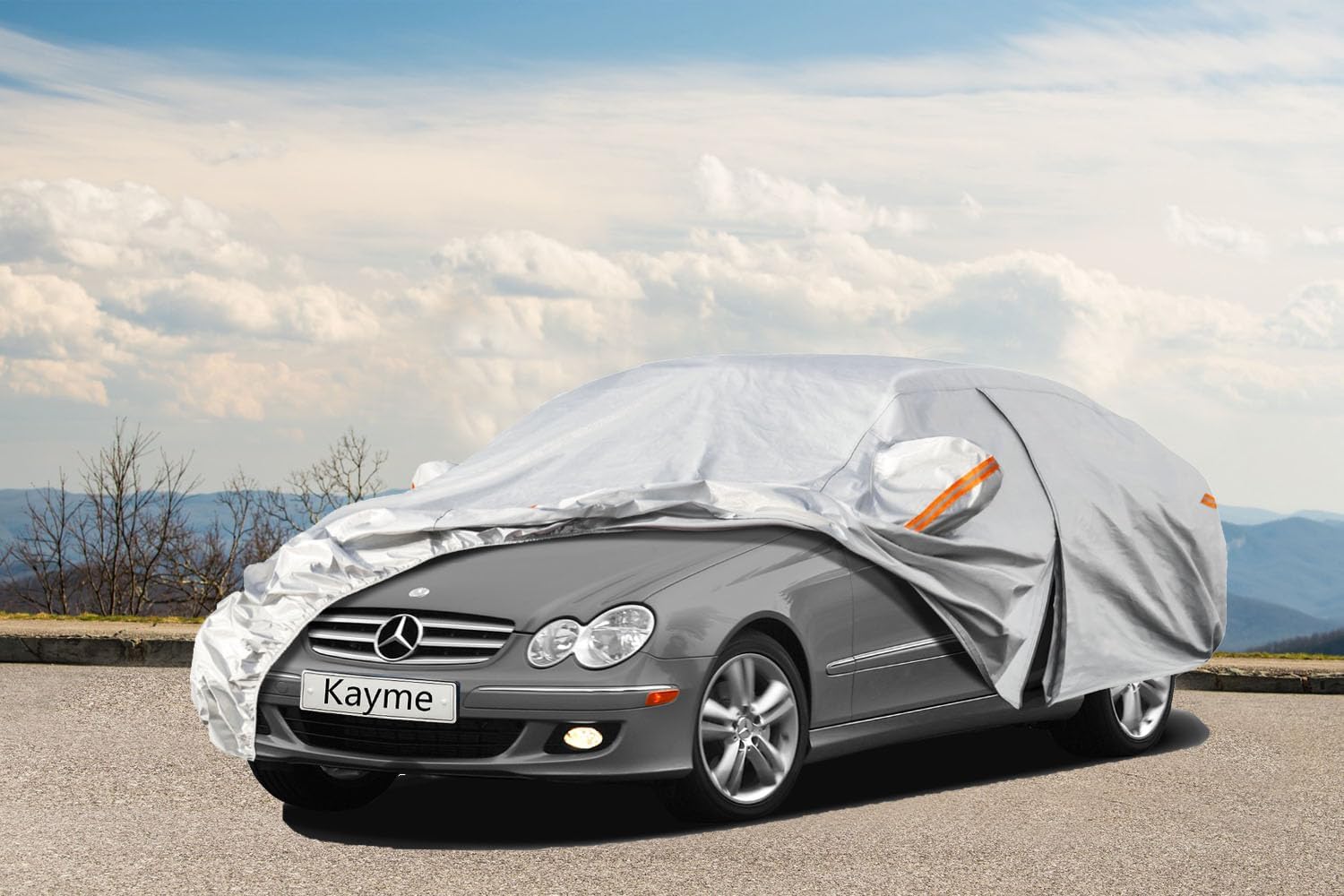 Kayme 6 Layers Car Cover Custom Fit for Mercedes Benz CLK 200 280 320 350 430 500 (1997-2025) Waterproof All Weather for Automobiles, Outdoor Full Cover Rain Sun UV Protection.Silver