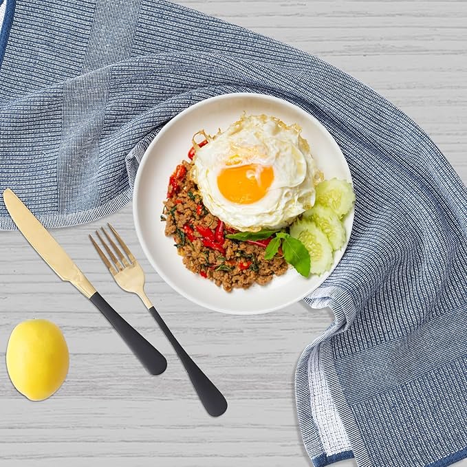Homaxy Premium Kitchen Towels(18”x 28”, 6 Pack), Large Cotton Kitchen Hand Towels, Flat and Terry Dish Towels, 380 GSM Highly Absorbent Tea Towel Set with Hanging Loop, Navy Blue