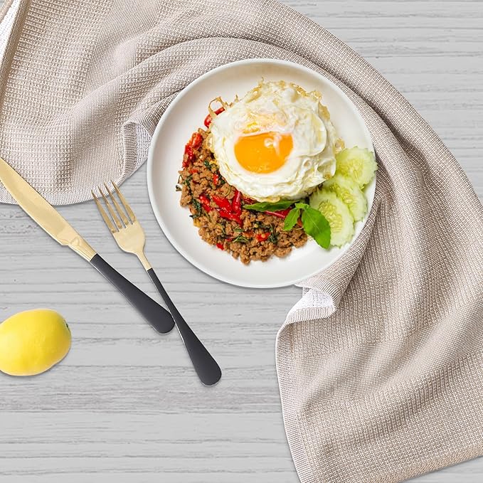 Homaxy Premium Kitchen Towels(18”x 28”, 6 Pack), Large Cotton Kitchen Hand Towels, Flat and Terry Dish Towels, 380 GSM Highly Absorbent Tea Towel Set with Hanging Loop, Khaki