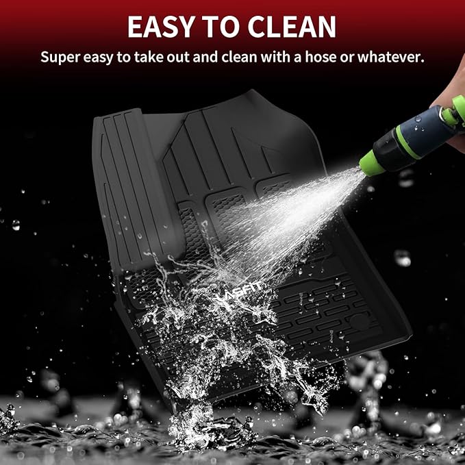 - ALL WEATHER PROTECTION - Shields your floor from dirt, mud, salt, rain, snow and even hot summer temperatures. Cleaning up daily wear and tear off our car mats is a breeze.