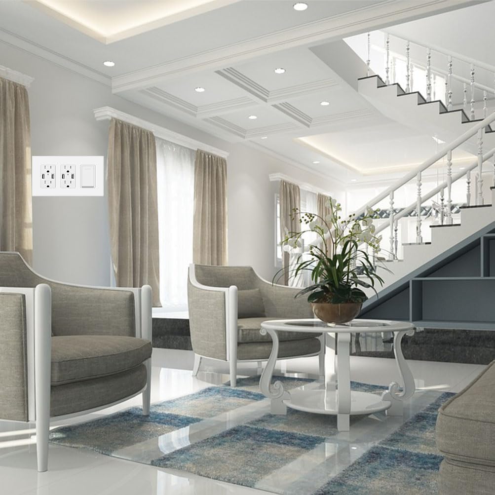 - 【Compatible Widely】Screwless triple wall plates work with all kinds of decorator-style switches and outlets including dimmer, light switch, smart switch, rocker switches, sensors, timer switches, GFCI outlets, electric outlets and and single/double/compo switches, etc.
