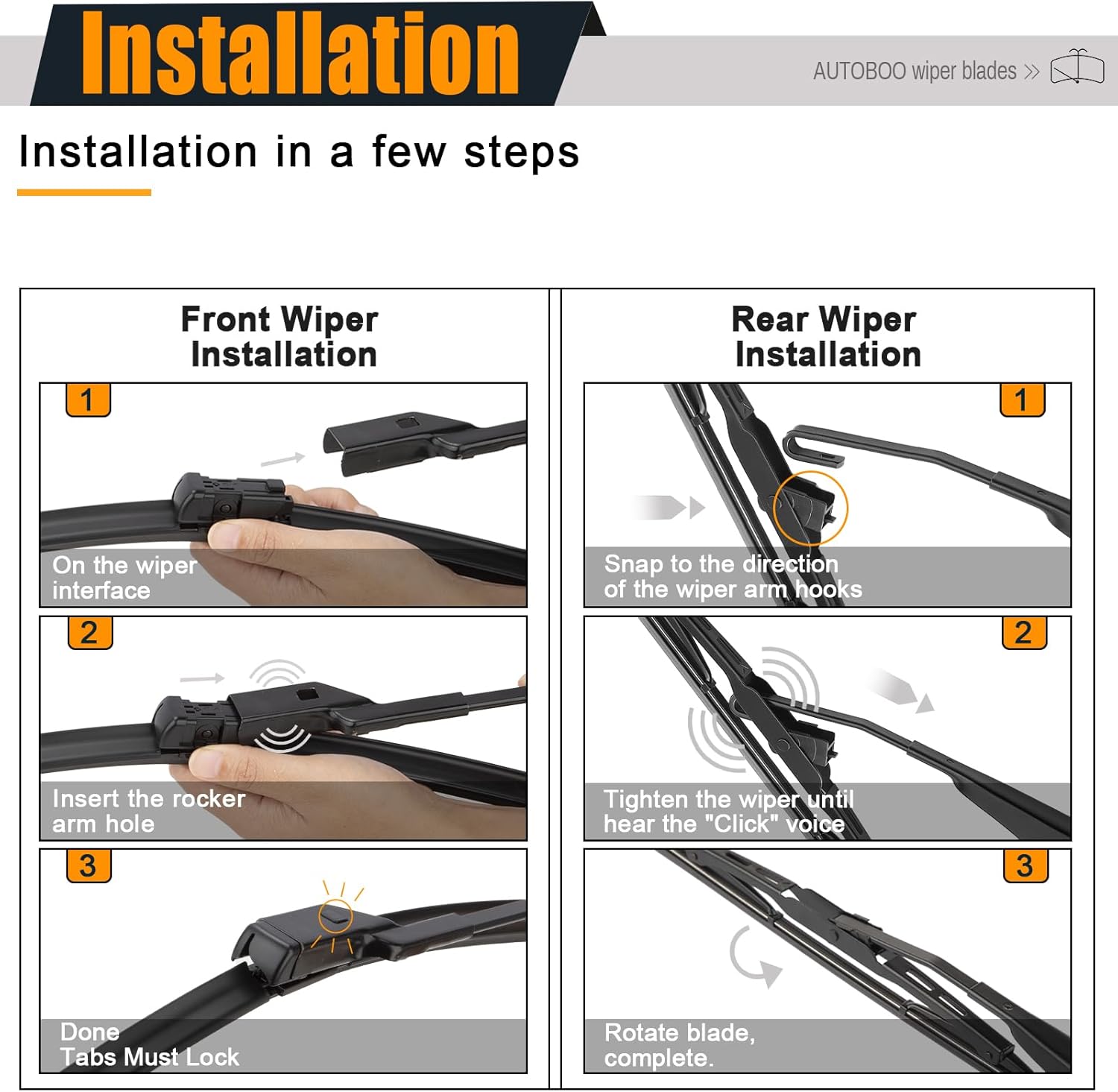 - WHAT YOU GET:Complete set of 3 wiper blade : 26"+14"+10" (Left and right and Rear)