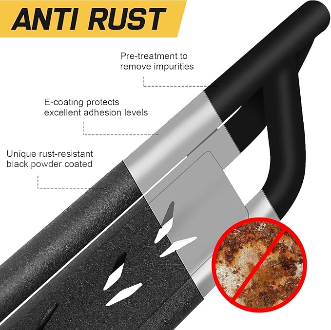 - MATERIAL: The Rock Sliders Are Made Of Heavy Duty Carbon Steel With Dual-Stage Textured Black Powder Surface For Excellent Rust And Corrosion Resistance. The Tube Is 2 Inches with Support Up to 500 LBS.