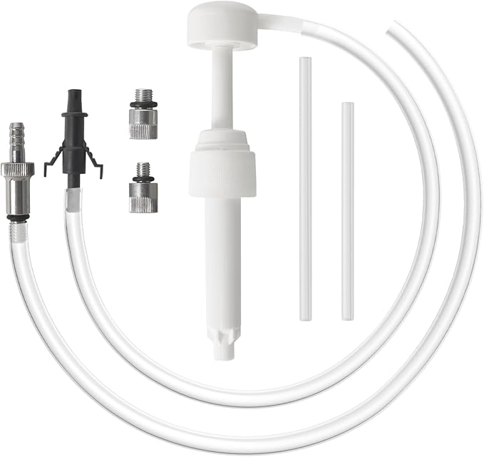 - Comprehensive Oil Pump Kit - includes a fluid pump, two long fill hoses, two rigid suction tubes, a 3rd hand adapter, a 3/8'' swivel adapter, an 8mm adapter, and a 10mm adapter. With everything you need in one package, it offers a comprehensive solution for your fluid transfer needs.