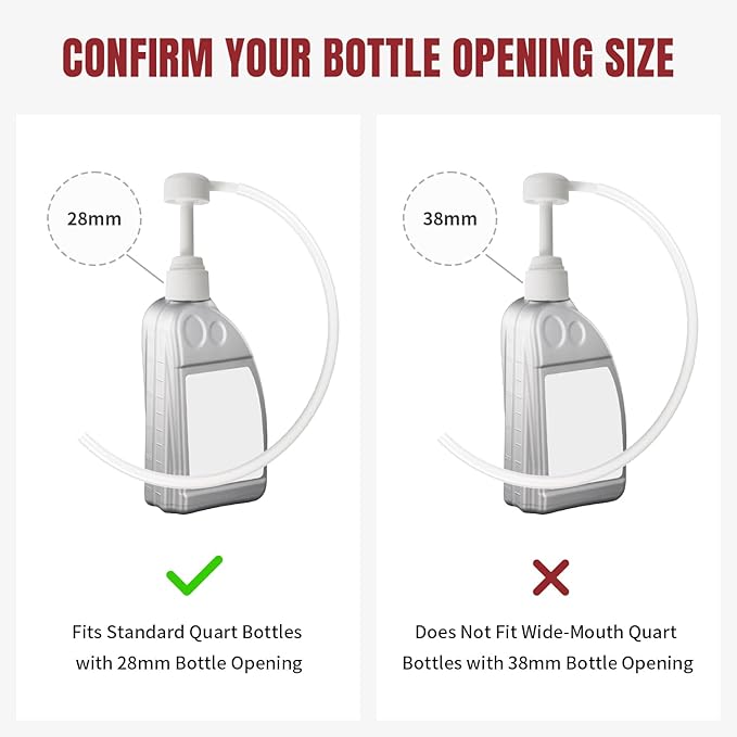- Handy Design - designed to fit standard quart bottles with a 28mm bottle cap, allowing for seamless fluid dispensing with 8cc per pump stroke.